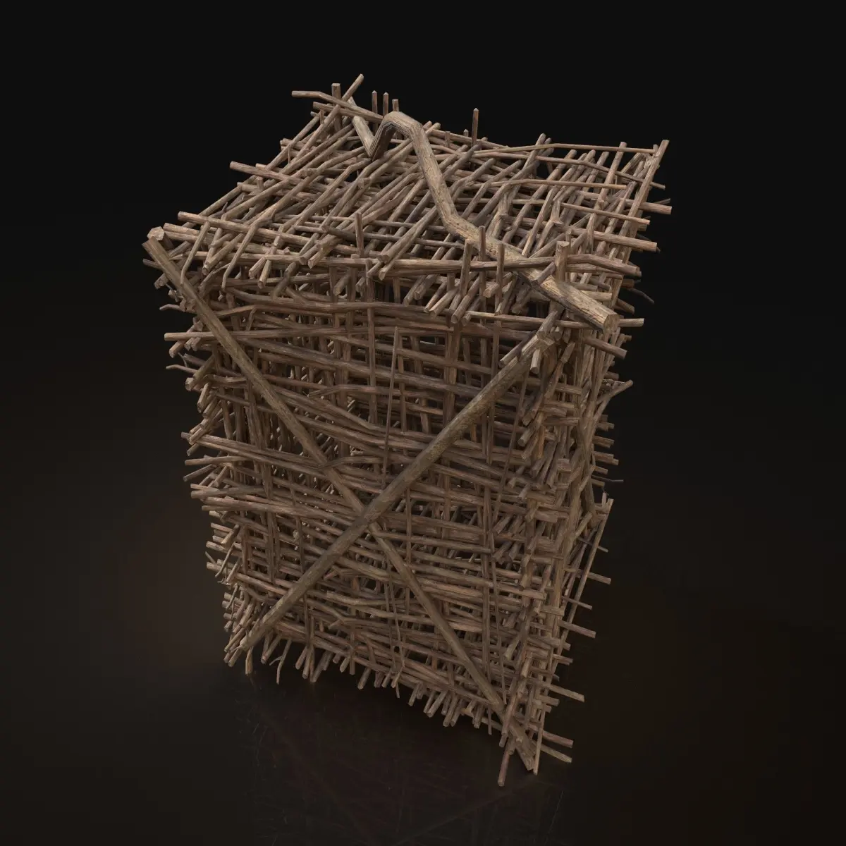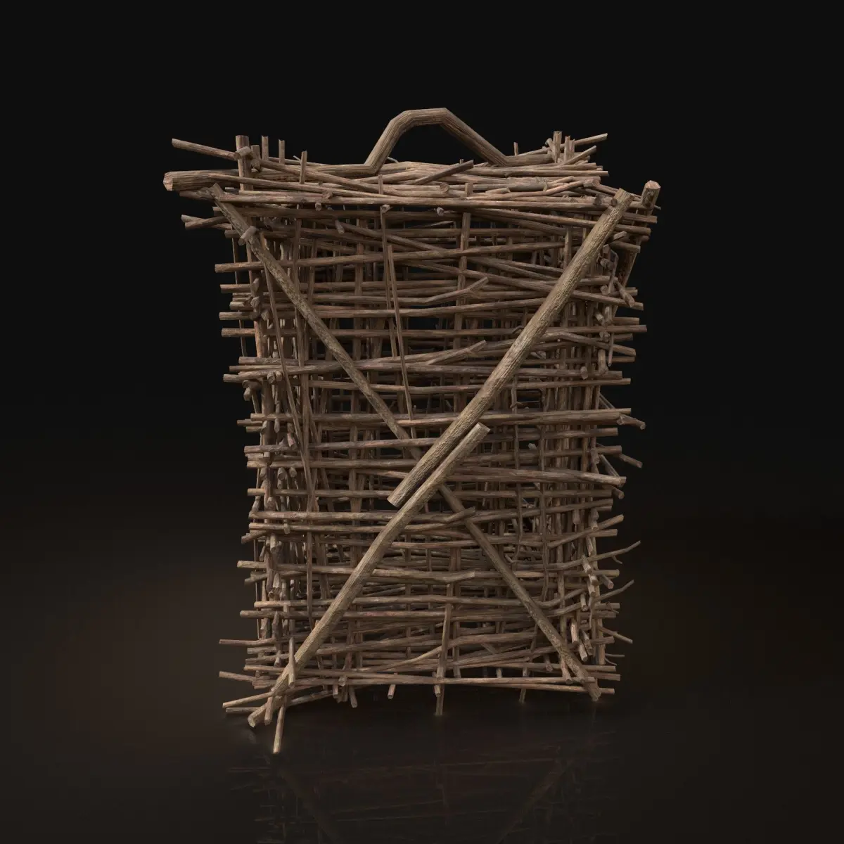 - Next gen, AAA quality, game-ready model of animal cage made of sticks.