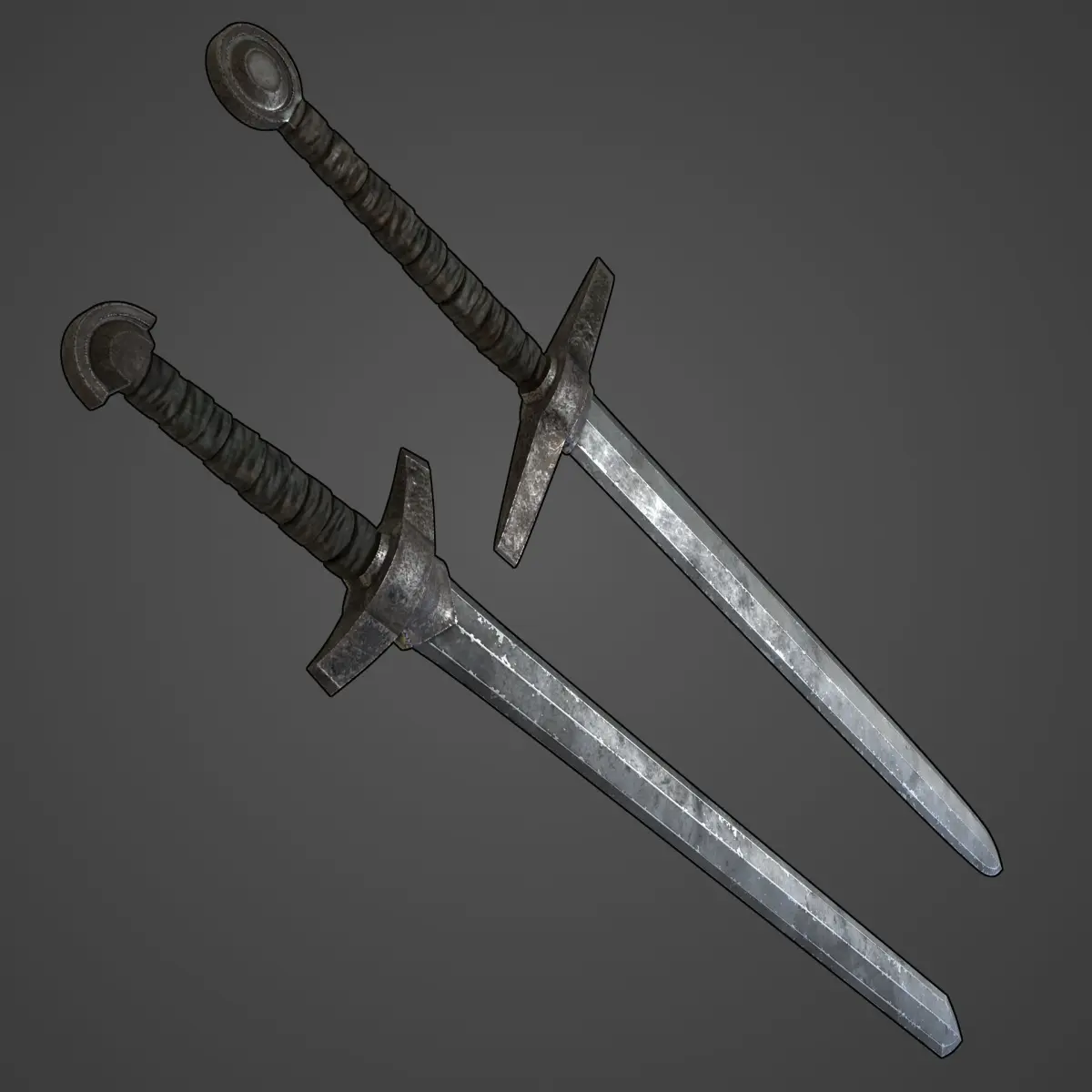 This collection contains set of 4 basic, common medieval swords.2 two-handed + 2 one-handed
