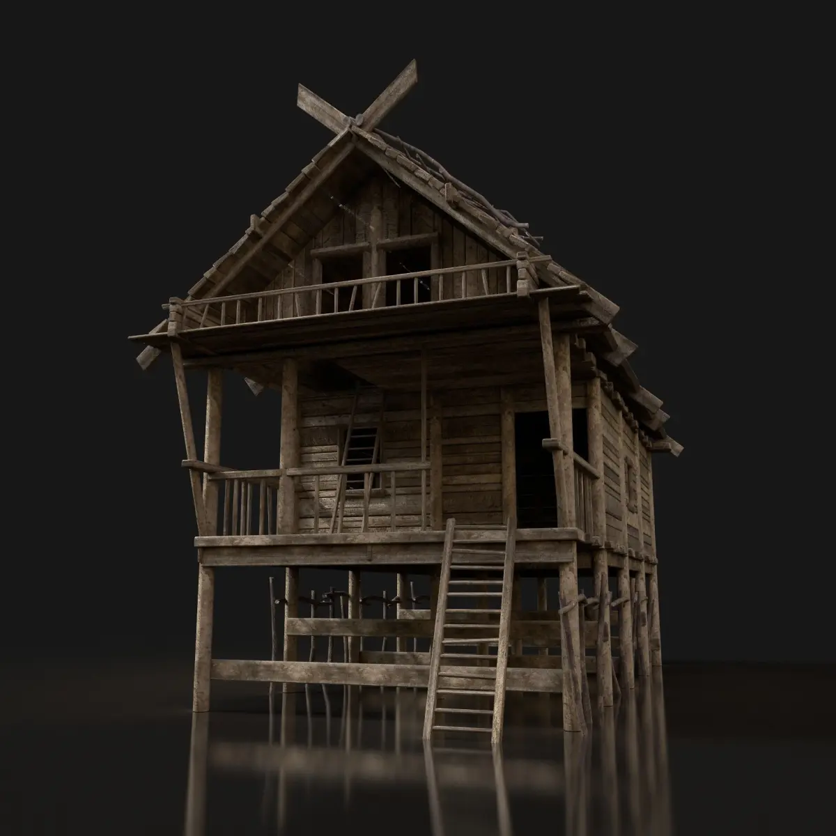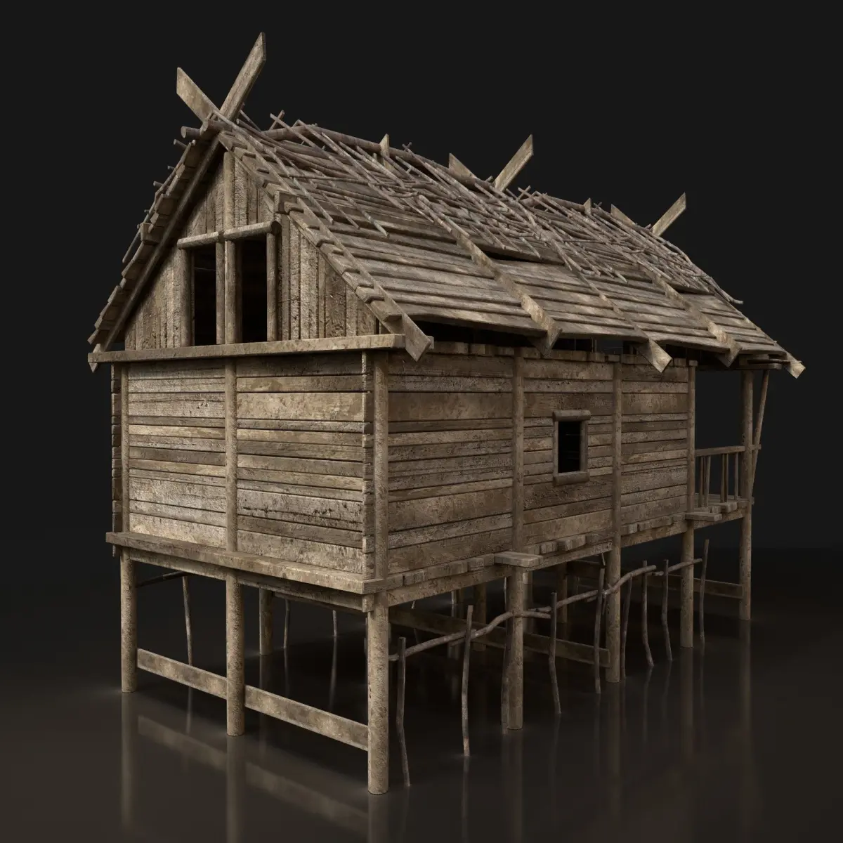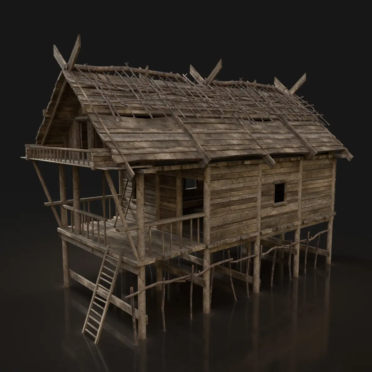 - Next gen, AAA quality, game-ready model of forest swamp house.