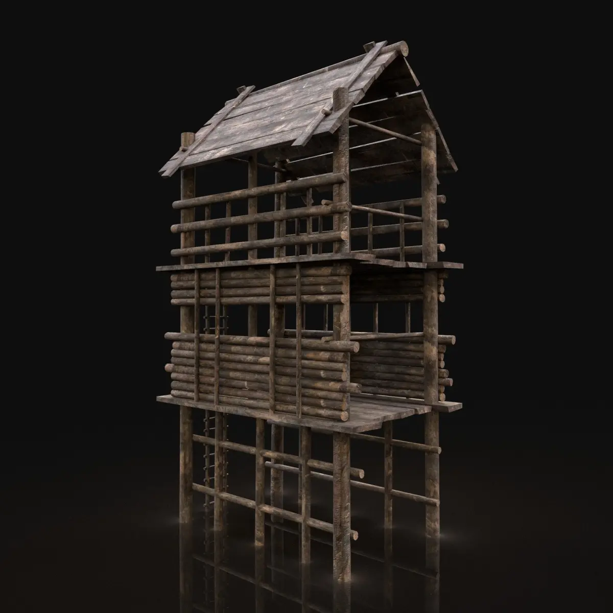 - Next gen, AAA quality, game-ready model of a wooden watchtower.