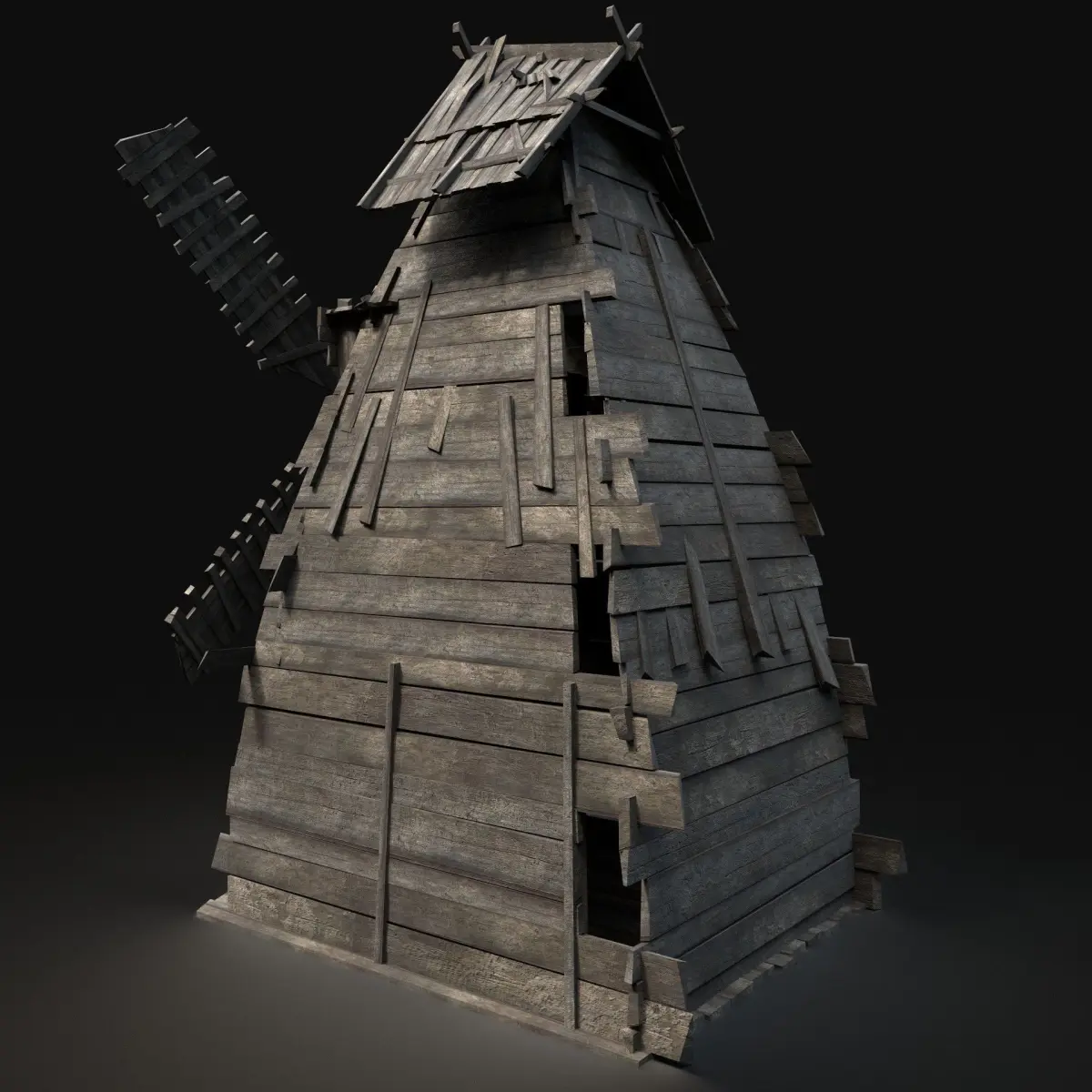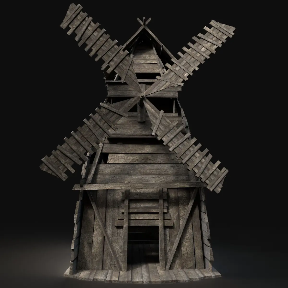 Next Gen AAA Viking Wooden Enterable Fantasy Windmill Free low-poly 3D model