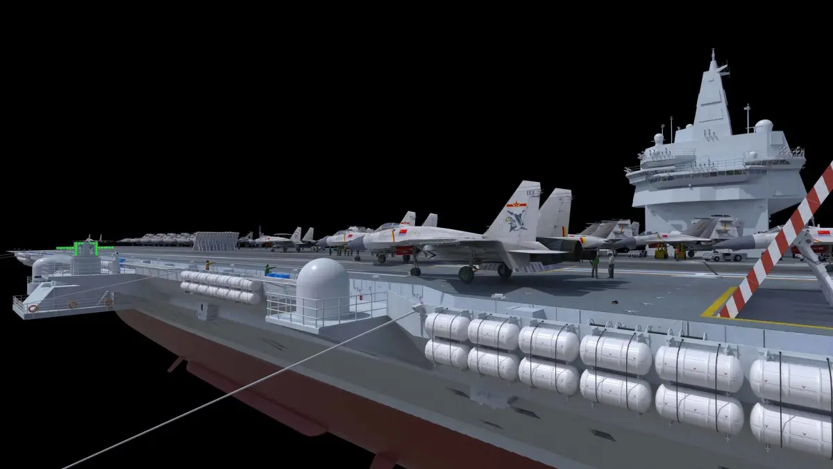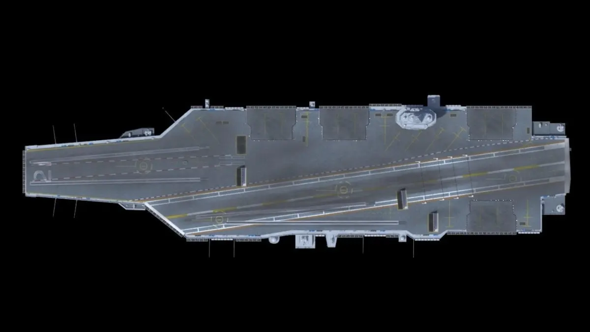 All parts of the aircraft carrier model can be moved, Wanfa guns, anti-aircraft missiles, etc. are parent-child constraints, and can be rotated K animation. The elevator steel cable has been constrained and bound, which can directly animate the elevator K. The flame shield has a mechanical connecting rod structure, and the texture is a 4K texture, which has been ablated. The catapult tow bar has a path constraint, which can make ejection animation. The deck map is an 8K map, and the shell map is made of a block bump map, which is close to the bump effect formed after welding the steel plate. The inner hangar has been dug out and stiffeners have been made inside to make shots inside the hangar.