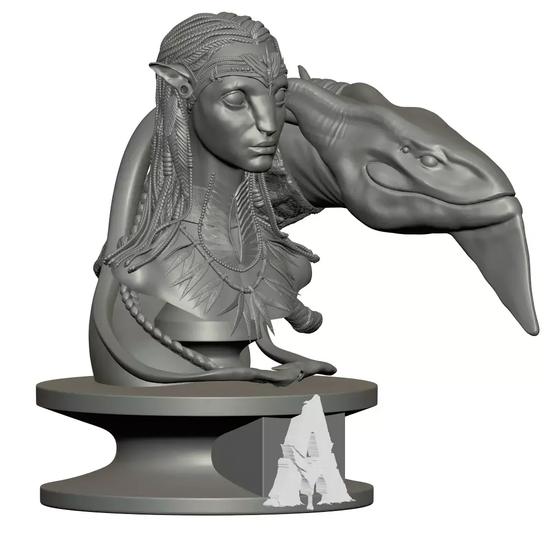 High-detail STL bust inspired by Neytiri, the iconic Na’vi warrior from an epic sci-fi universe. The composition features her sacred bond with a Pandora creature, detailed tribal jewelry, and a stylized base inspired by Na’vi culture. Designed for 3D printing, perfect for collectors and fans anticipating the next Avatar film.