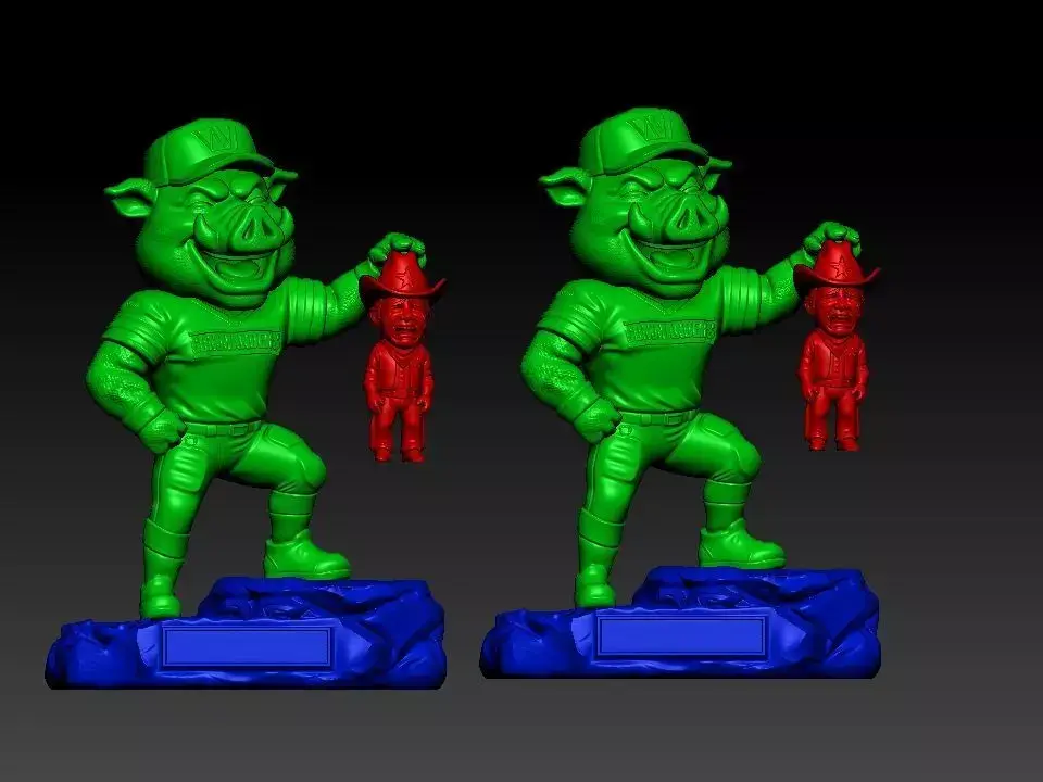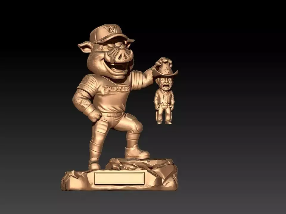 Product Description: Own the rivalry with the ultimate trash-talk trophy! This high-detail 3D printable figure captures the fierce spirit of the NFC East. Featuring a muscular, laughing Washington Commanders Hog mascot effortlessly lifting a tiny, weeping Dallas Cowboy by his hat.