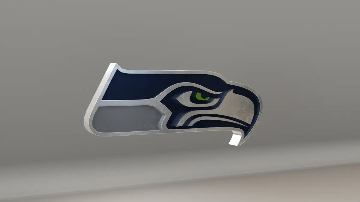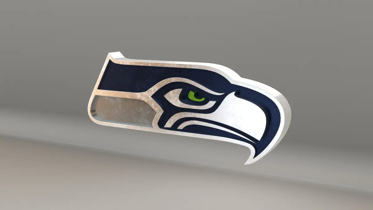 NFL Seatle Seahawks Logo, modeled and rendered in Maya using Redshift and textured in Substance Painter. It contains a base color and a packed metallic, roughness and AO. The renders are using the metallic texture, but if you don't use it you have the logo with it's original color, like the last picture.