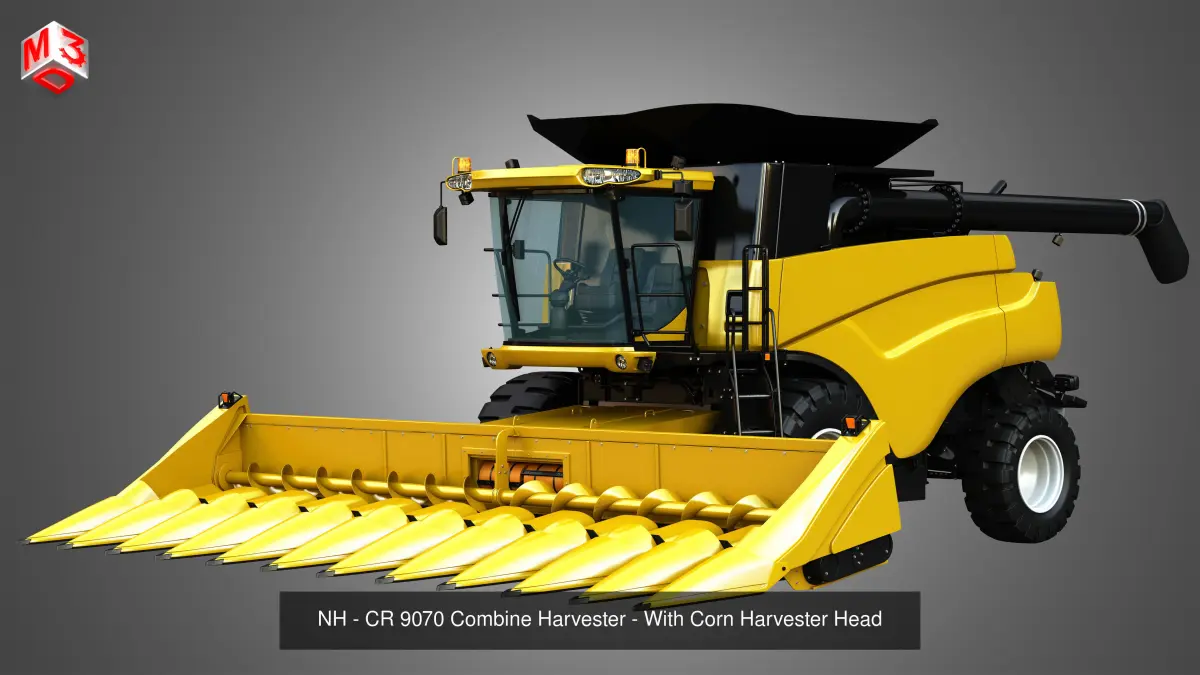1 . New Holland - CR 9070 Combine Harvester - With Corn Harvester Head .2 . New Holland - CR 9070 Combine Harvester - With Grain Harvester Head .