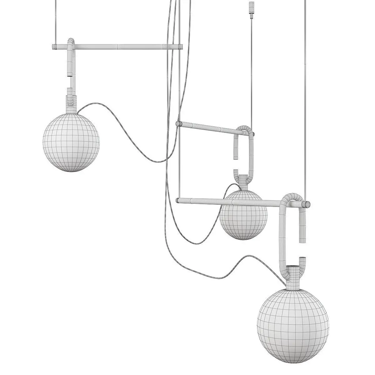 Designed by Neri & Hu, the NH Suspenion features White Blown glass spheres on Gold rings hanging from three adjustable arms. The materials are a perfect combination of tradition and innovation, as well as an expression of responsible and sustainable design conveyed by the use of a low-consumption retrofit LED light source and the eco-friendly cardboard packaging.