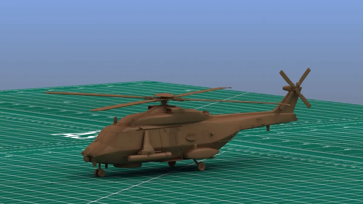 NH90 Helicopter 3D print file. For maximum flexibility model is built to real world scale - units are meters. Resize in your software to whatever scale is required.