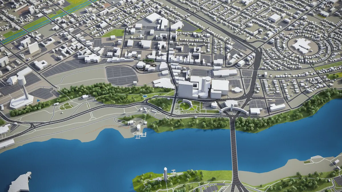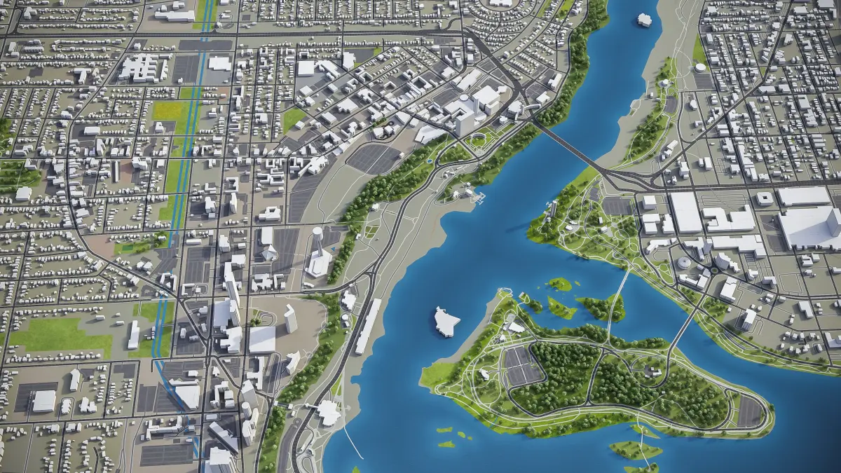 - Full city extents up to 100 x 100 km — or crop to an area of interest for better format compability and scene performance