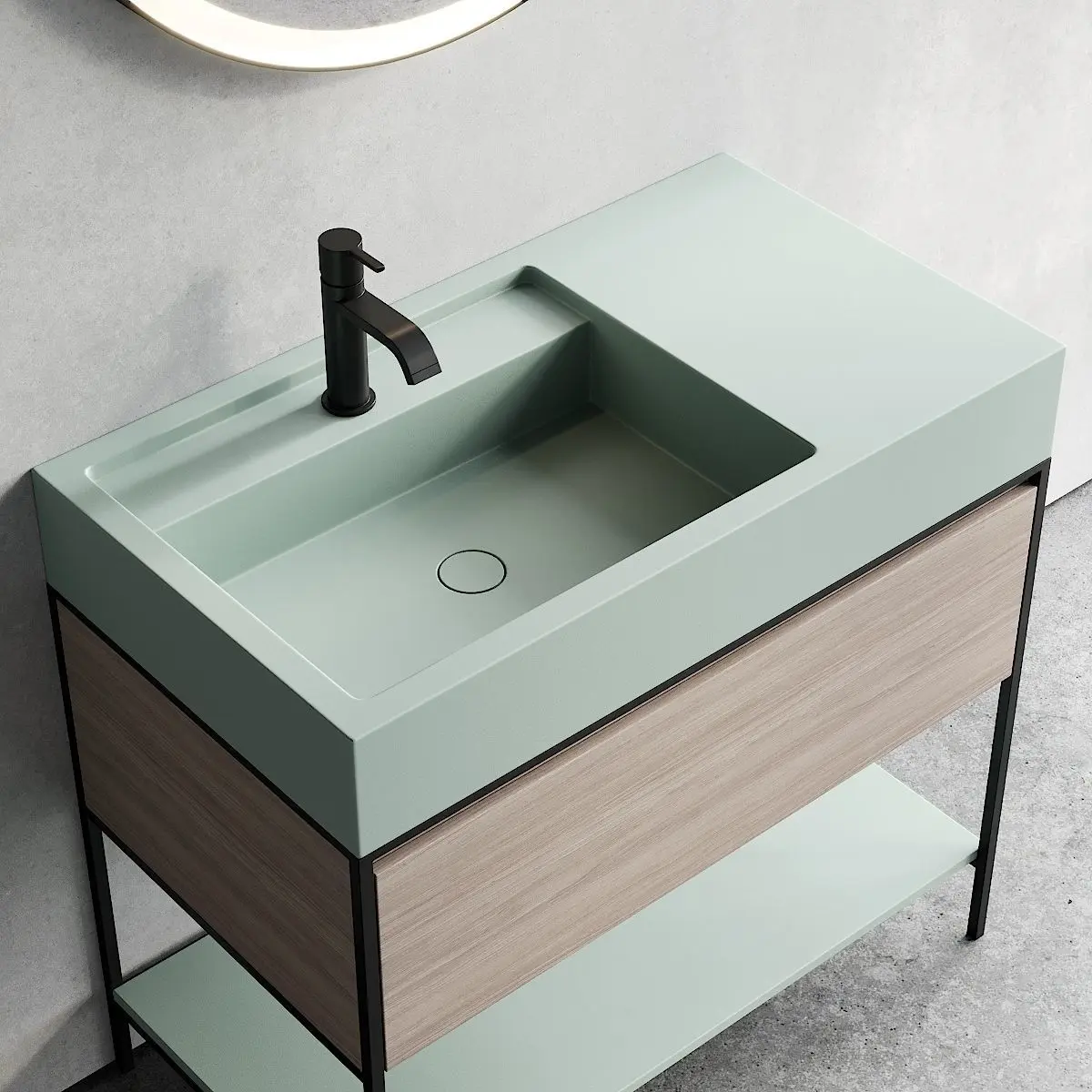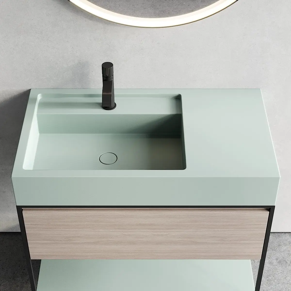 Vanity unitCollection - ElenType - Floor-standing vanity unit with drawersMaterials - Ceramic, MDFDesigners - Studio 63Manufacture year - 2020Dimensions: Width - 900mm Depth - 500mm Height - 850mm