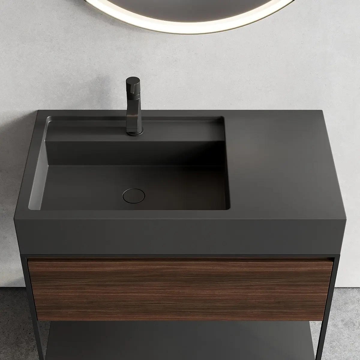 Vanity unitCollection - ElenType - Floor-standing vanity unit with drawersMaterials - Ceramic, MDFDesigners - Studio 63Manufacture year - 2020Dimensions: Width - 900mm Depth - 500mm Height - 850mm
