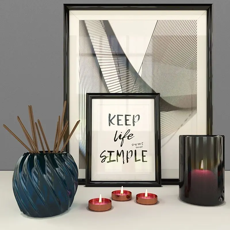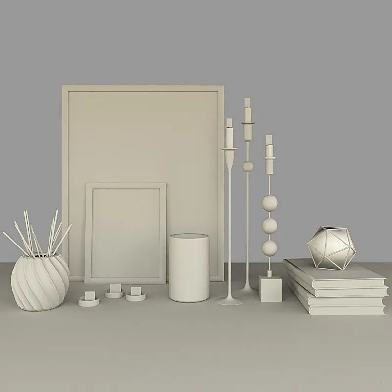 The set consists of different decor accessories, vase, books, frames and candles.The archive has:-3ds Max (2012 version, with Corona materials)-3ds Max (2015 version, with Corona materials)-FBX-OBJ-OBJ MTL-3Ds studio-Collada DAE-Preview