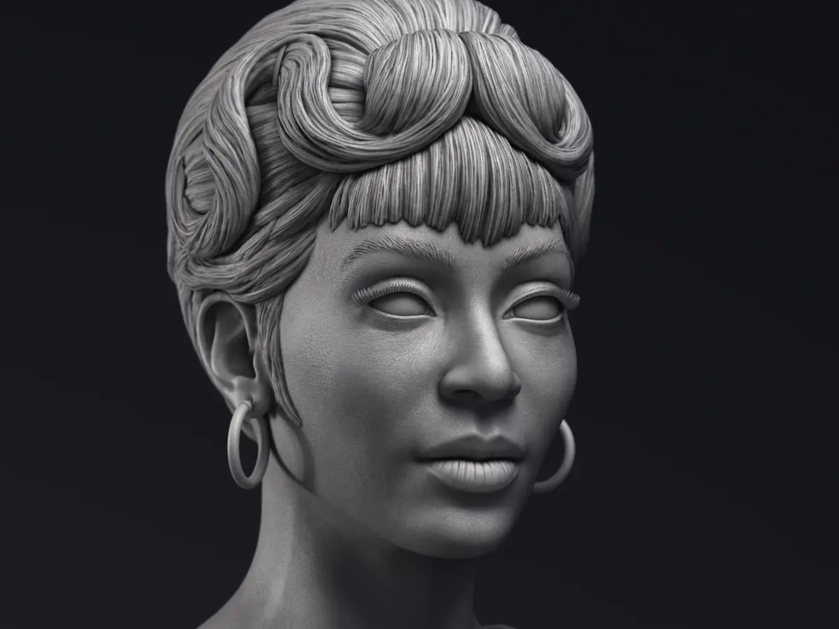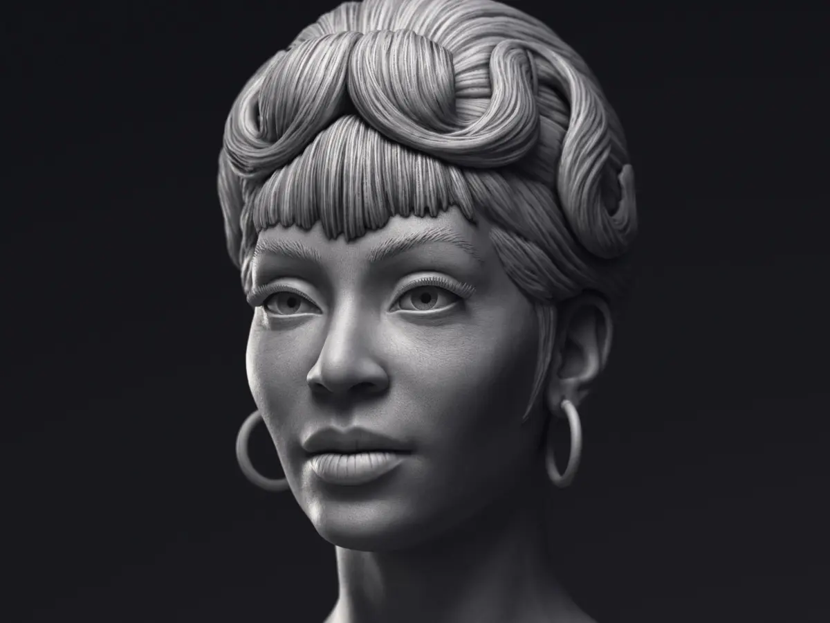 Highly detailed 3d printable bust of Nichelle Nichols in the role of Lieutenant Nyota Uhura, Chief Comunications officer of NCC-1701 USS Enterprise ship from Star Trek The Original Series.