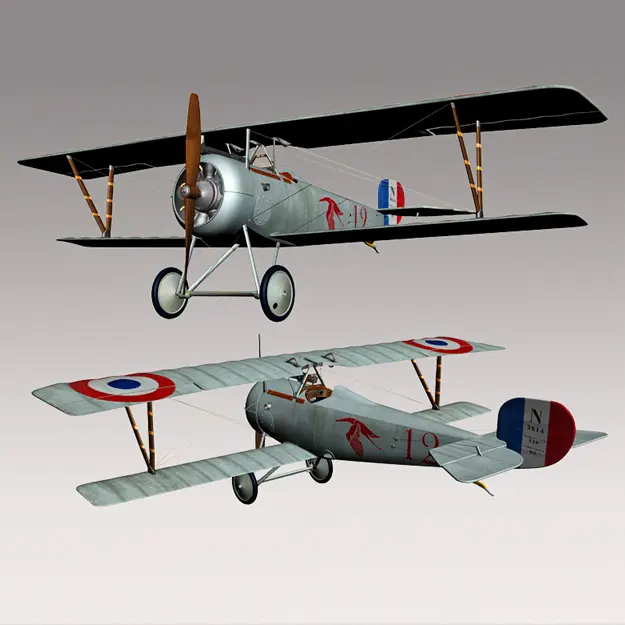 This high-poly model is an excellent for video animation and rendering stills. It is extremely detailed including Le Rhone 130 hp rotary engine and is supplied with a synchronized machine gun of later version.The archive contains Bodypaint of textures and standard materials. Pilot included as bonus.