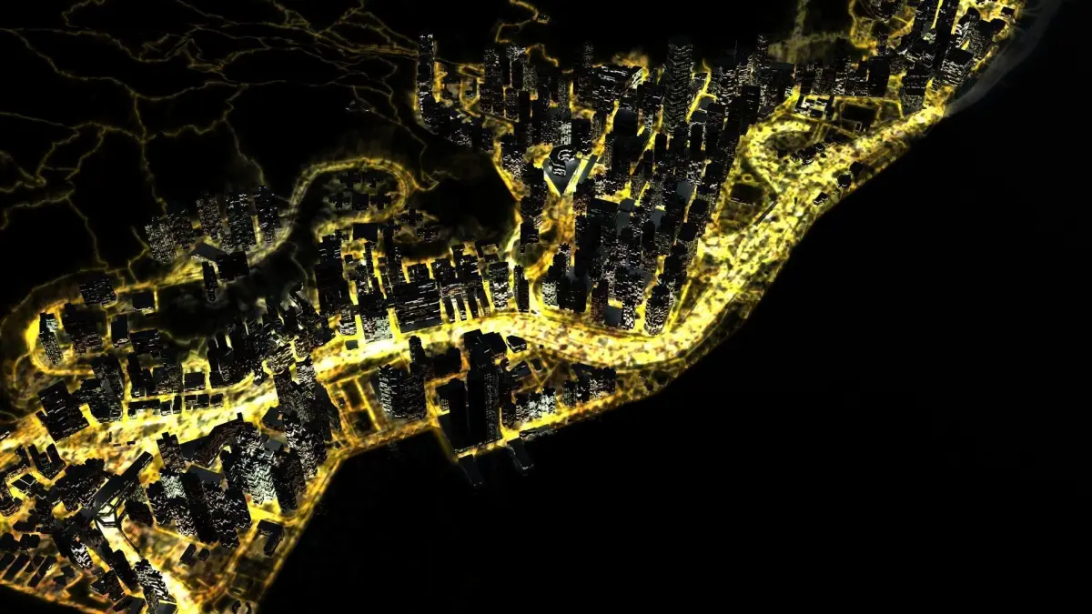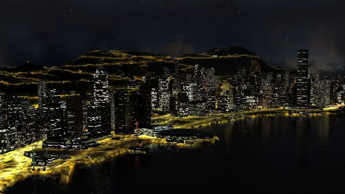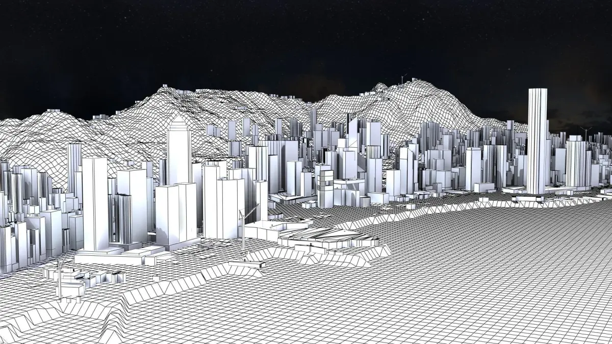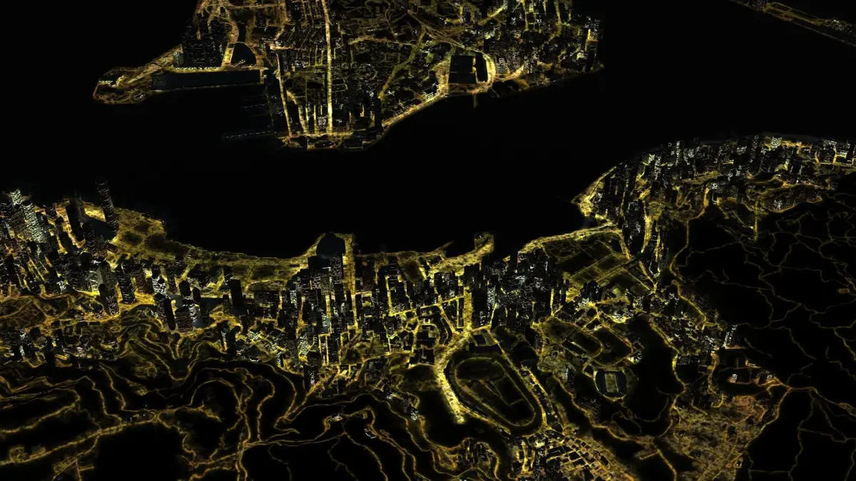 Hong Kong , China, night-time city. Huge urban environment model covering approx 18km x 15km (E/W x N/S).