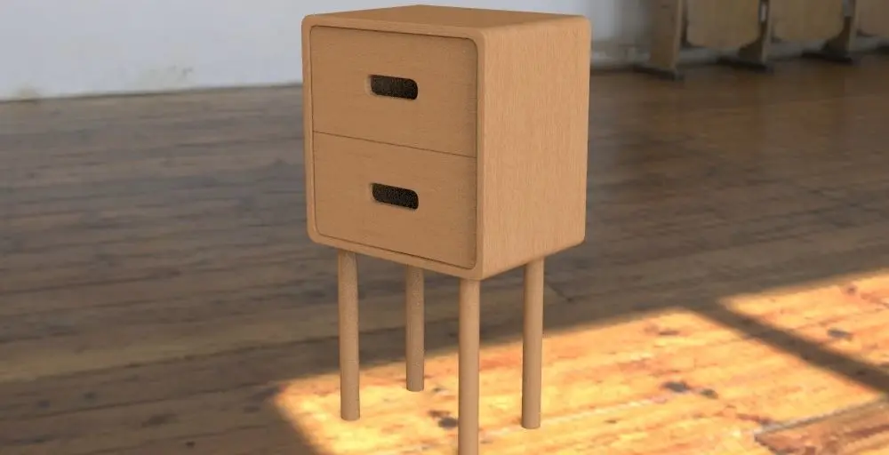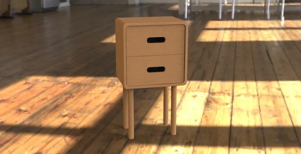 A nightstand, alternatively night table, bedside table, daystand or bedside cabinet, is a small table or cabinet designed to stand beside a bed or elsewhere in a bedroom. Modern nightstands are usually small bedside tables, often with one or sometimes more drawers and/or shelves and less commonly with a small door.made in Autodesk Maya 2019