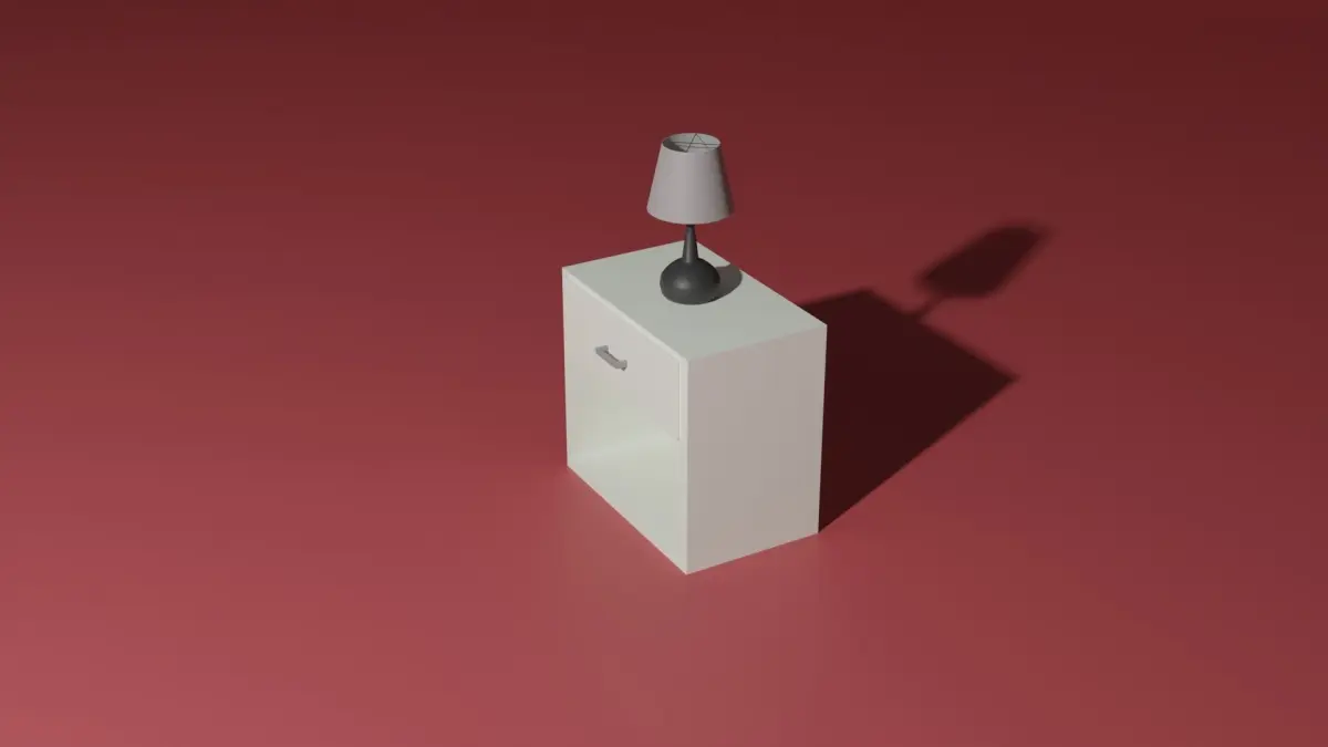 A simple white night stand with a drawer and a black lamp on it. The color can be easily changed. The model is made in Blender 3.0 and rendered with Cycles.