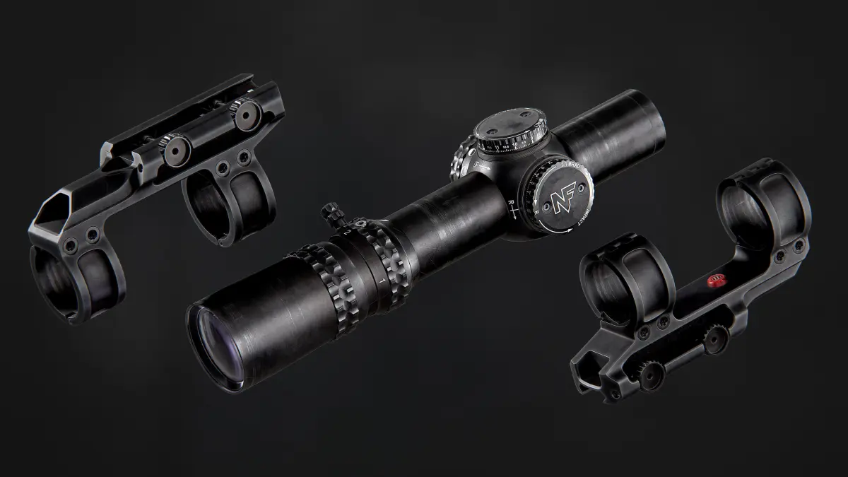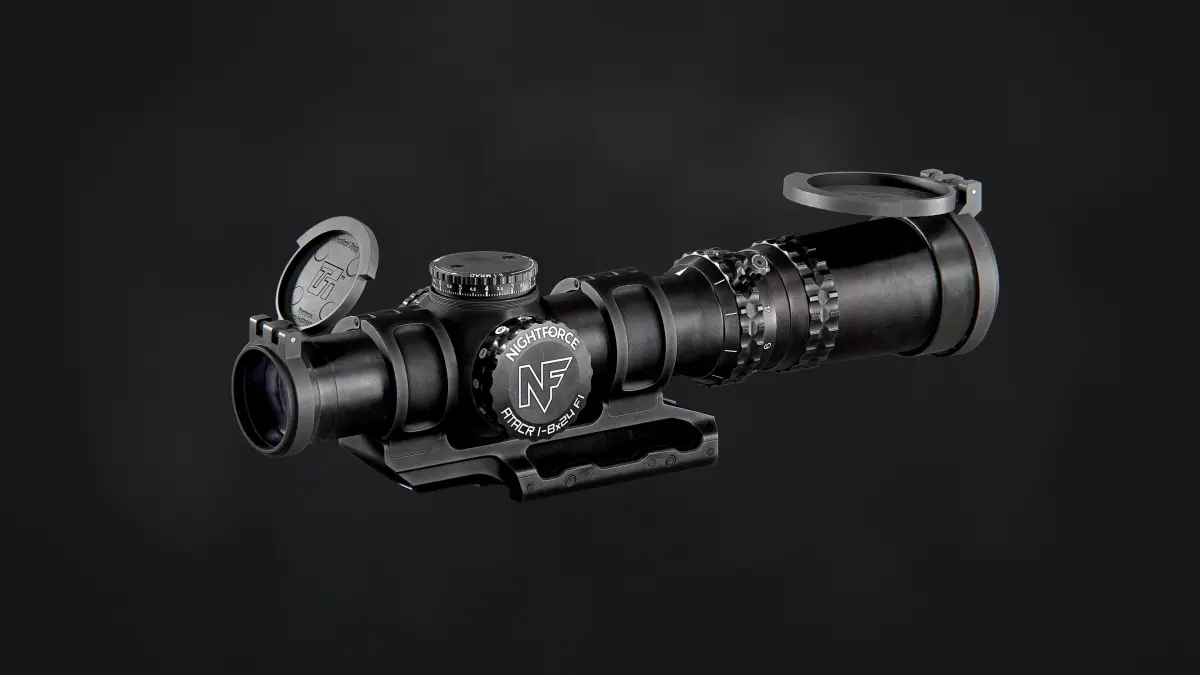 Game-ready Nightforce ATACR 1-8x24mm scope and Scalarworks LEAP/07 mount models. Accurately modeled and textured up to every marking all of the moving parts are separated so you can animate it, you can also open caps, or even remove them to expose lenses and dials.