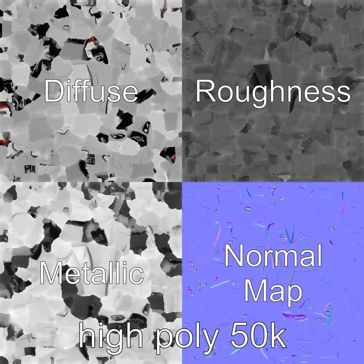 The model's textures are PBR, Diffuse, NormalMap, and reflection/roughness/metallic, which are suitable for any modern rendering engine. All models are accurately unwrapped and have no overlapping UV. All textures are 4096*4096 in size.