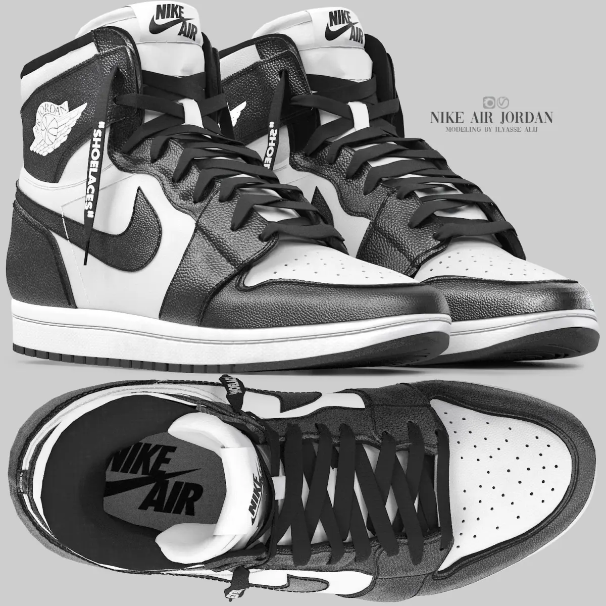 black and white nike air jordan 1 retrodescription FORMATPlatform: 3dsMax 2015 + obj,Render: Vray + coronasize : 113 MBpolys : 819900verts: 829976Dimensionsx : 24, 746 cmy : 29, 949 cm