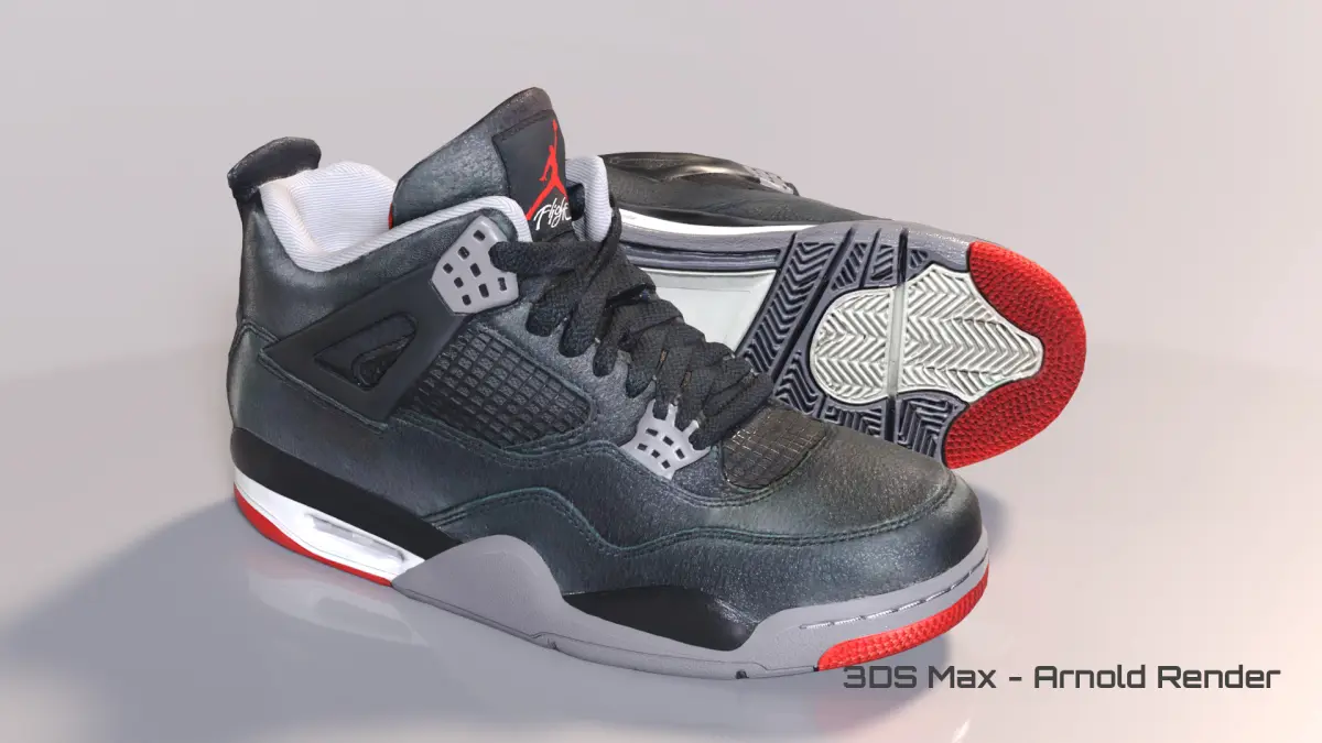 Nike Air Jordan 4 Bred 2024 edition, optimized low poly 3D model. The model is low poly 9408 Polygons 9409 Verts, Quads and tris only with non Overlapping UVs and gameready with physically accurate 4k PBR materials. Model has great topology and will respond well to rigging and animation. Mesh is closed and will function for 3d printing.