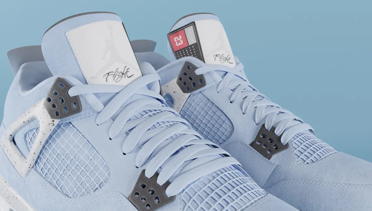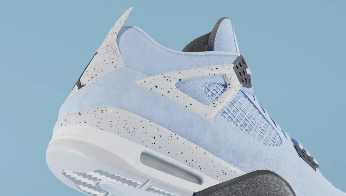 One of 2021's hottest Jordan releases, this sleek colourway elevates the already iconic Jordan 4 to another level. The colourway itself pays homage to Michael Jordans alma mater, University of North Carolina. Hits of black appear on the wing eyelets, sole, and Jumpman logo on the heel tab. Two woven labels are stitched to the tongue; one being the classic Jumpman woven label; the other being a Team Jordan jock tag. A black, white, and Tech Grey sole with a clear Air unit completes the design.