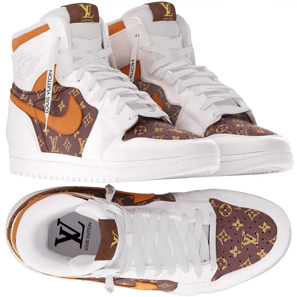 nike air jordan louis vuitton with white and browndescription FORMATPlatform: 3dsMax 2015 + obj,Render: Vray + coronasize : 156 MBpolys : 796,176verts : 805,434Dimensionsx : 246,582 mmy : 299,953 mmz : 193,21 mm