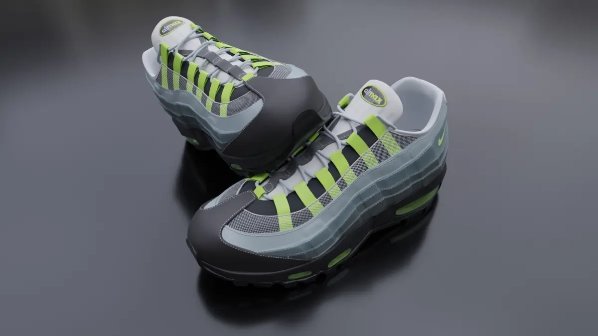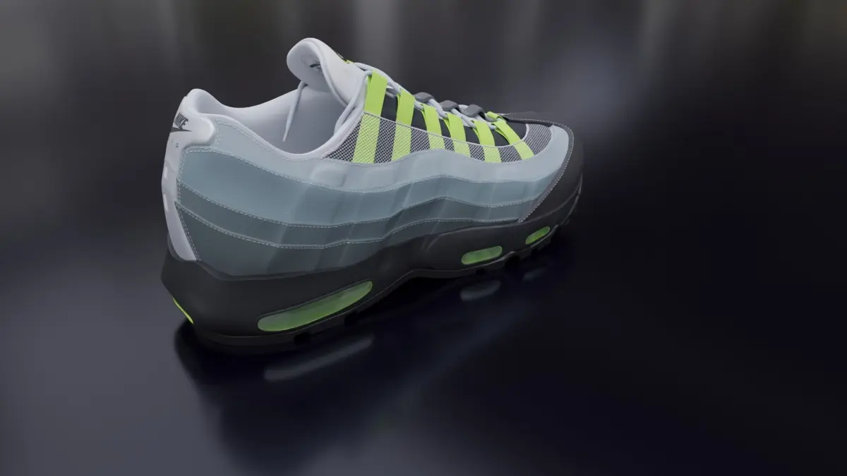 Nike airmax 95 shoe asset Created in Blender and rendered in cycles Mesh have a normal non triangle topology and ready for subdivision
