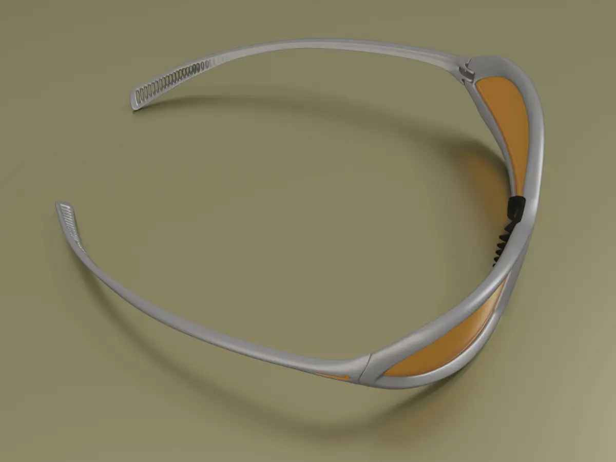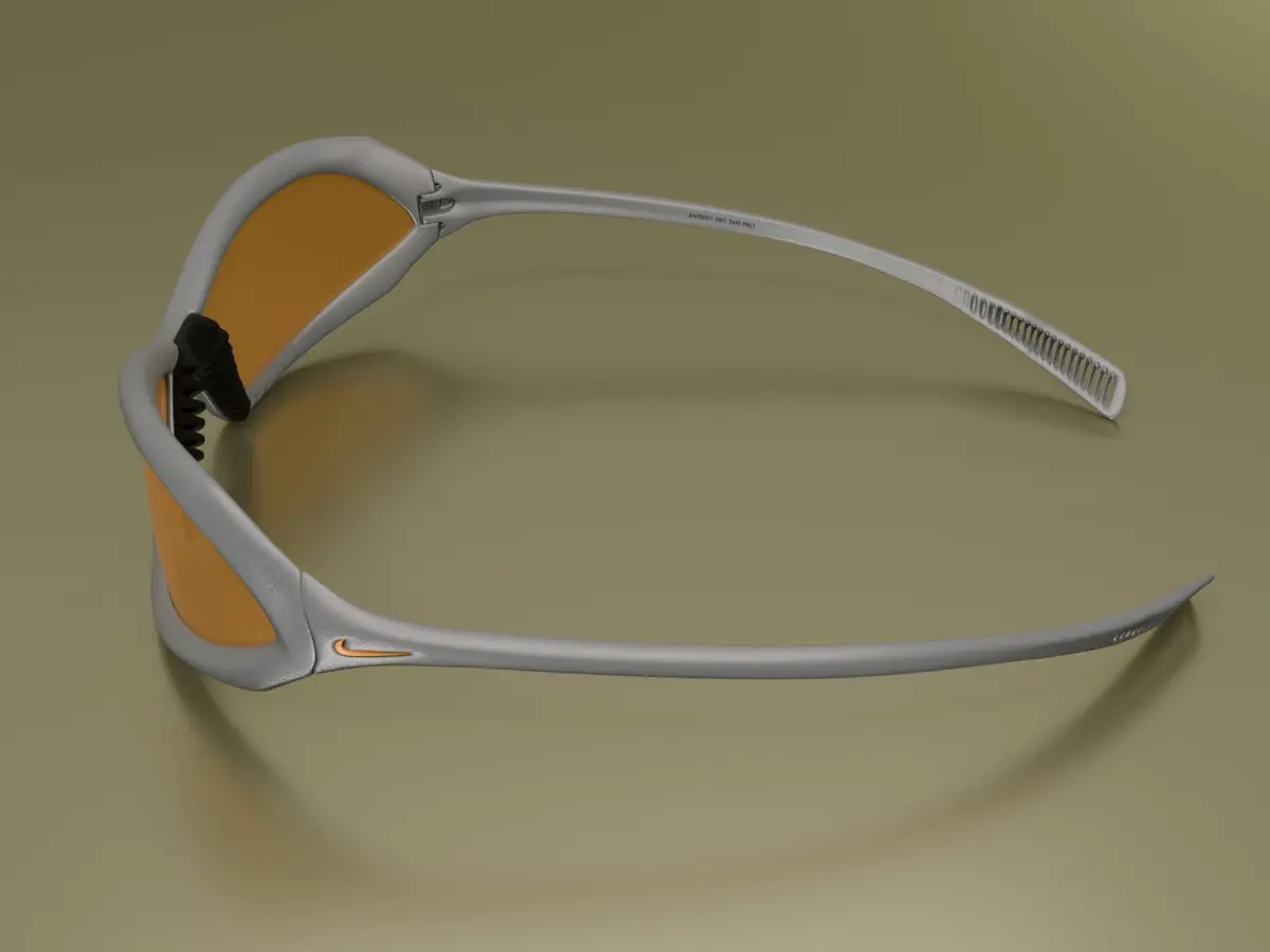 Nike Edgar Davids are modern shaped sunglasses and one of the iconic Nike products highly popular especially thanks to football player Edgar Davids despite the fact they are not sold anymore. Model contains Nike logo on both temples, hinges modelled in detail, nosepad and dynamic design. Glasses have metallic grey material and orange lenses. If you would like to download other models, check my profile Levap.