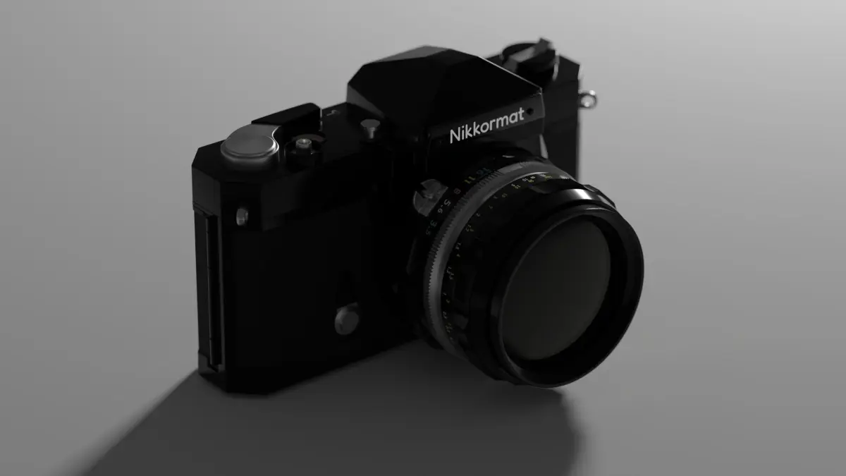 Made by using my dads old camera as a reference and some online diagrams of the lens I found. Materials etc included in blender file.