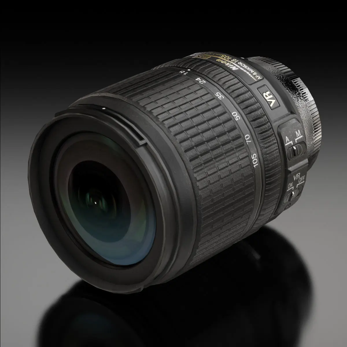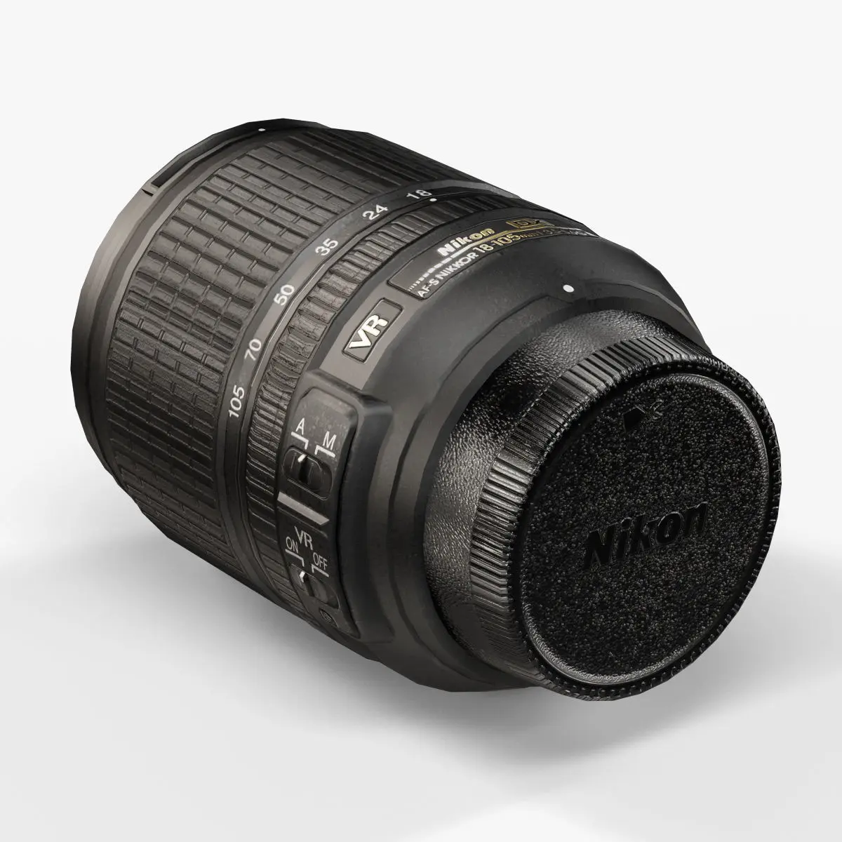 • Let me present to you simple-quality low-poly 3D model Nikon AF-S DX Nikkor 18-105mm f/3.5-5.6G ED VR Lens. This model can be used in various fields 3D Graphics such as game development, advertising, interior design, motion picture art, visualization, etc... Modeling was made with ortho-photos of real lens that is why all details of design are recreated most authentically.