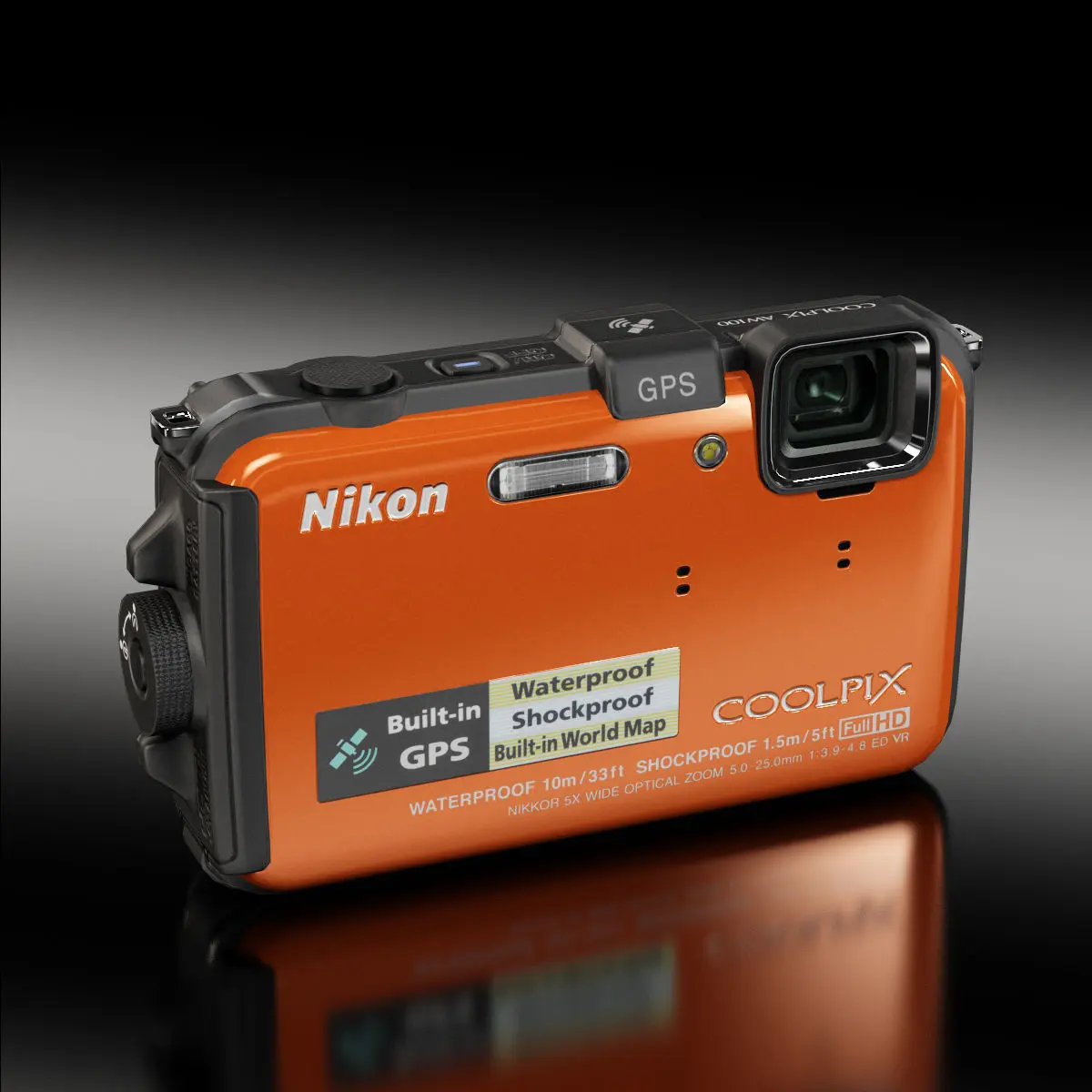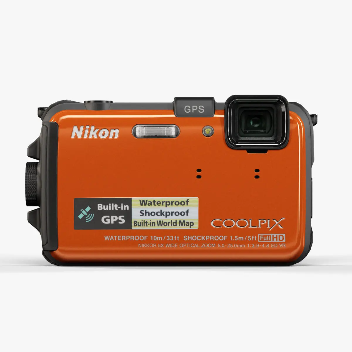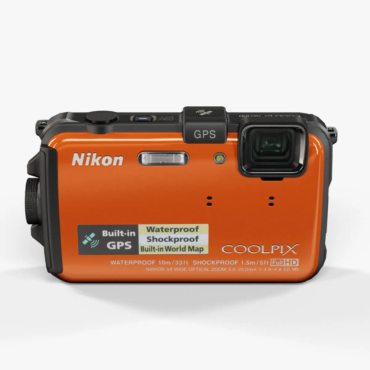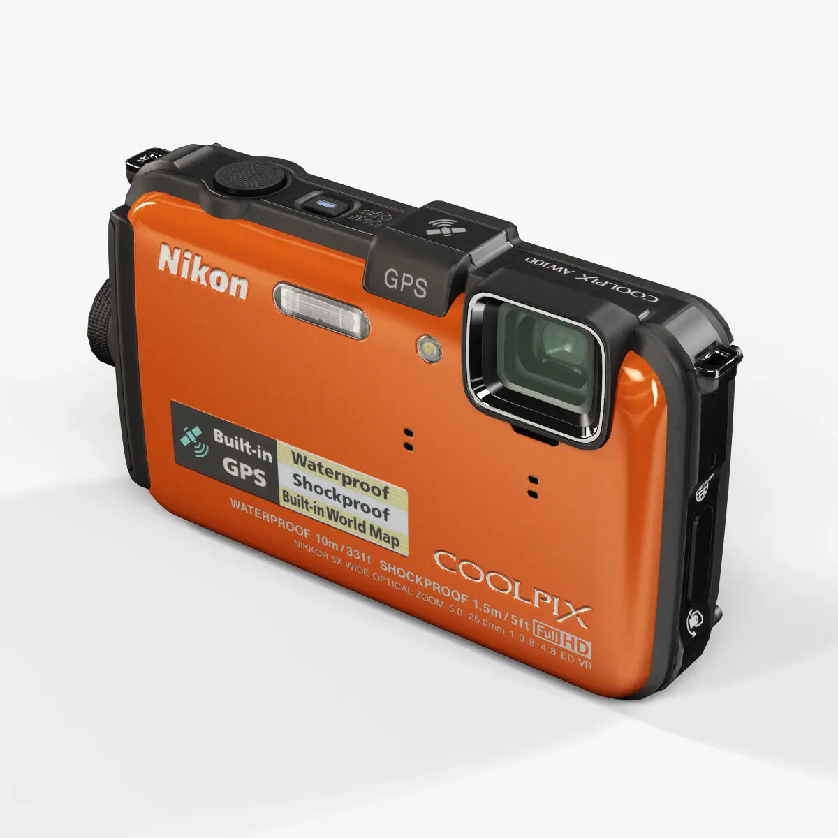 • Let me present to you high-quality low-poly 3D model Nikon Coolpix AW100. This model can be used in various fields 3D Graphics such as game development, advertising, interior design, motion picture art, visualization, etc... Model is presented in two colors: Black and Orange. Modeling was made with ortho-photos of real camera that is why all details of design are recreated most authentically.
