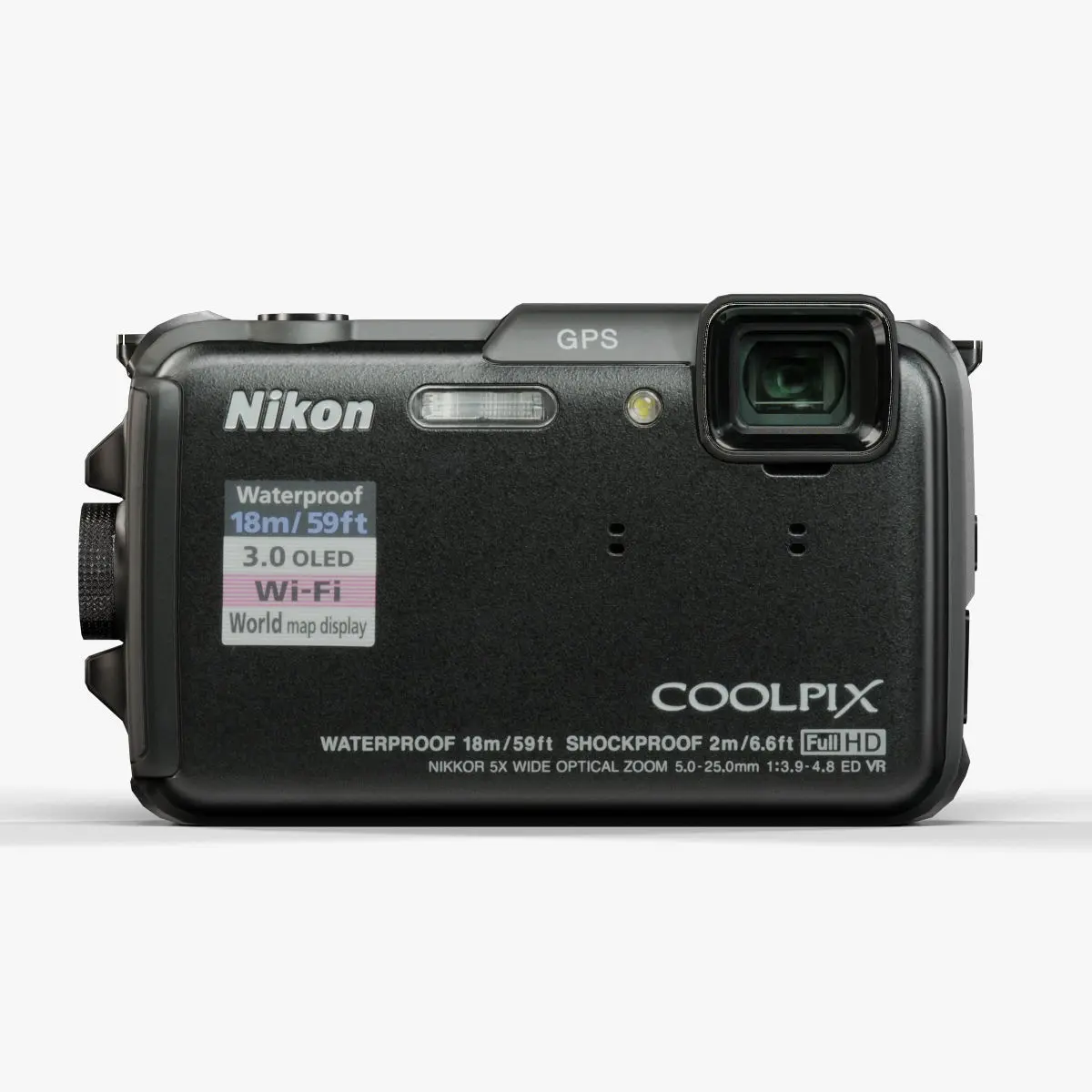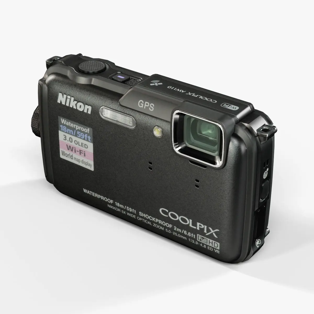 • Let me present to you high-quality low-poly 3D model Nikon Coolpix AW110 Black. This model can be used in various fields 3D Graphics such as game development, advertising, interior design, motion picture art, visualization, etc... Modeling was made with ortho-photos of real camera that is why all details of design are recreated most authentically.