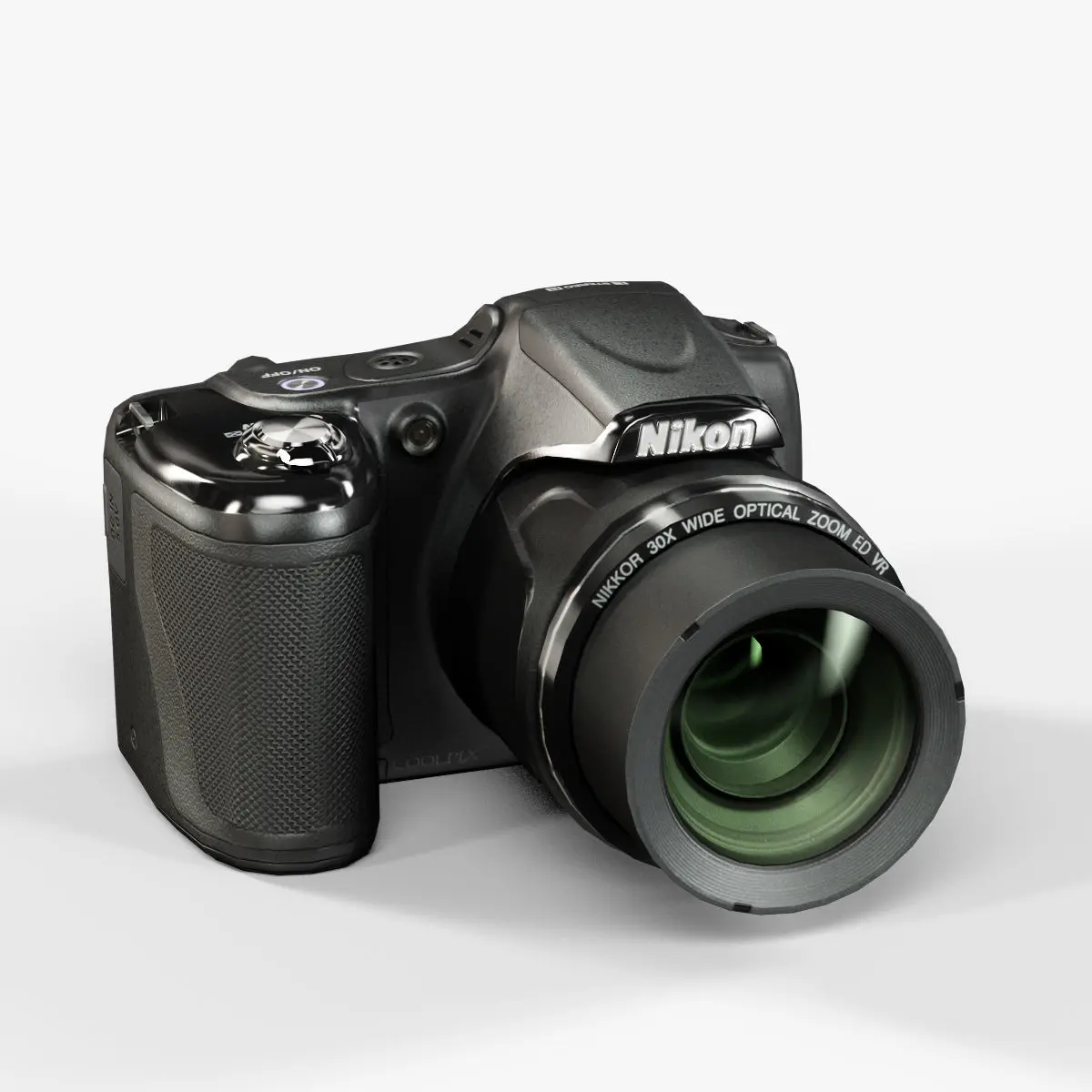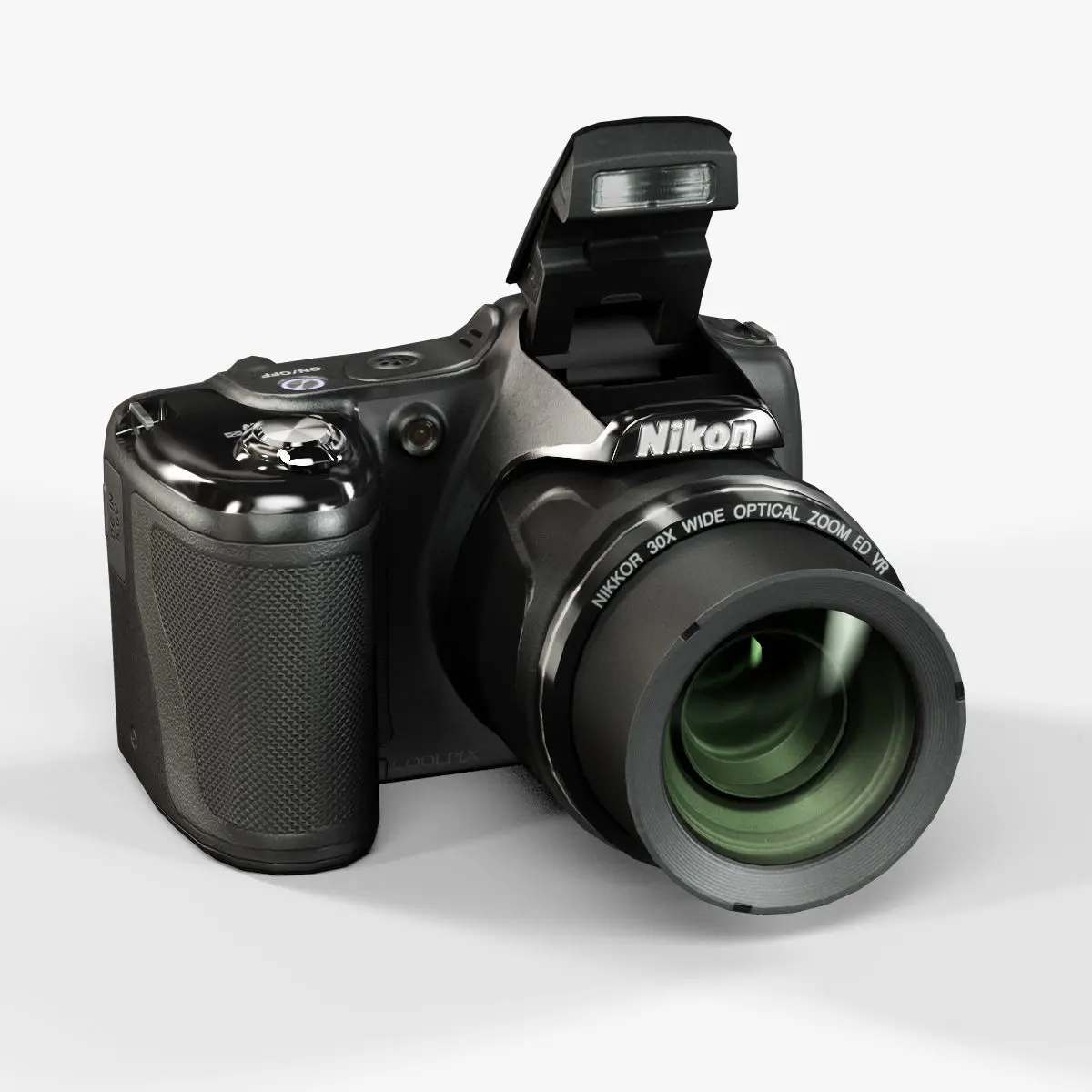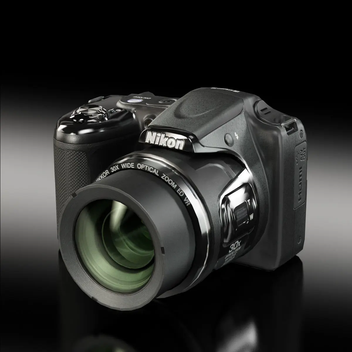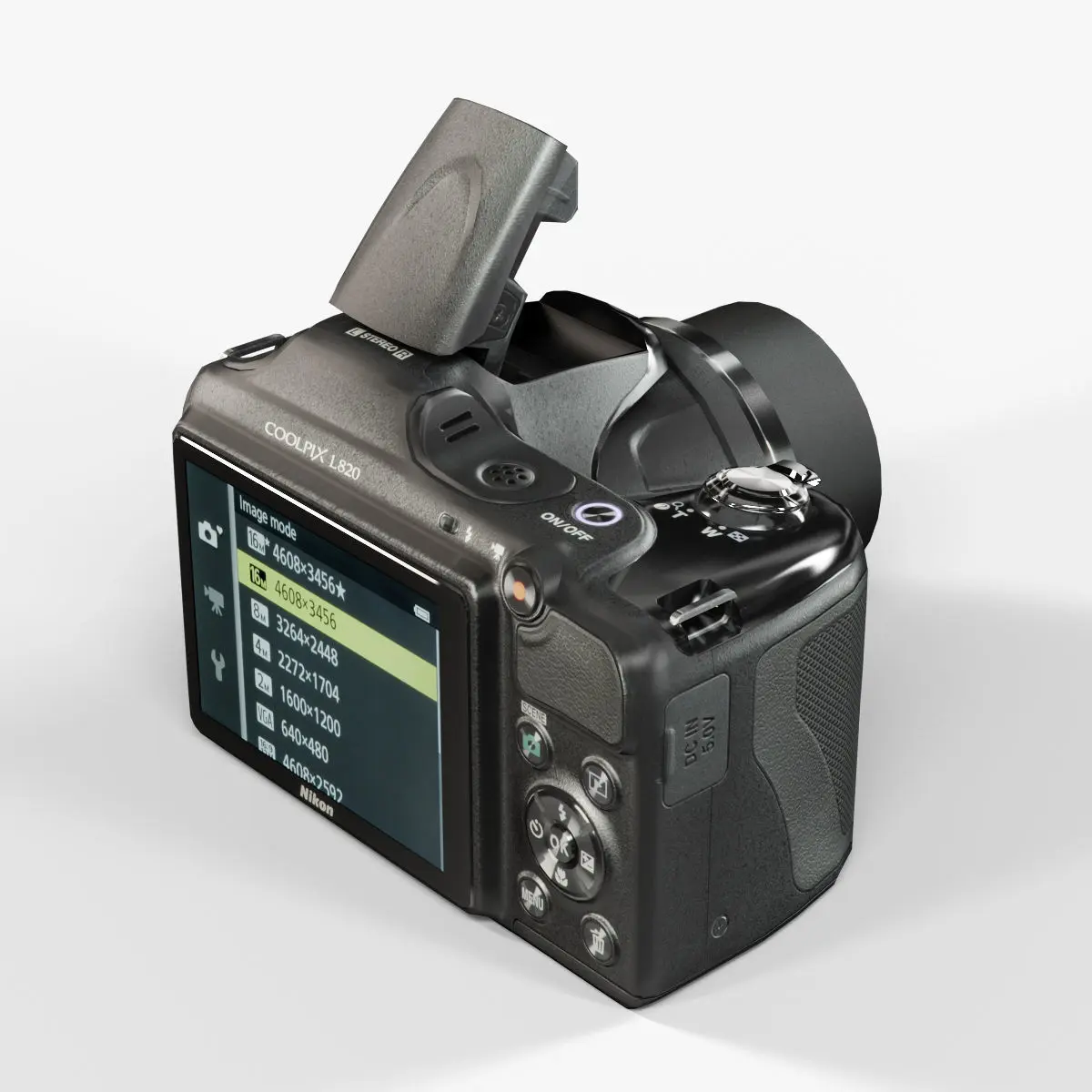 • Let me present to you high-quality low-poly 3D model Nikon Coolpix L820 Black. This model can be used in various fields 3D Graphics such as game development, advertising, interior design, motion picture art, visualization, etc... Modeling was made with ortho-photos of real camera that is why all details of design are recreated most authentically.