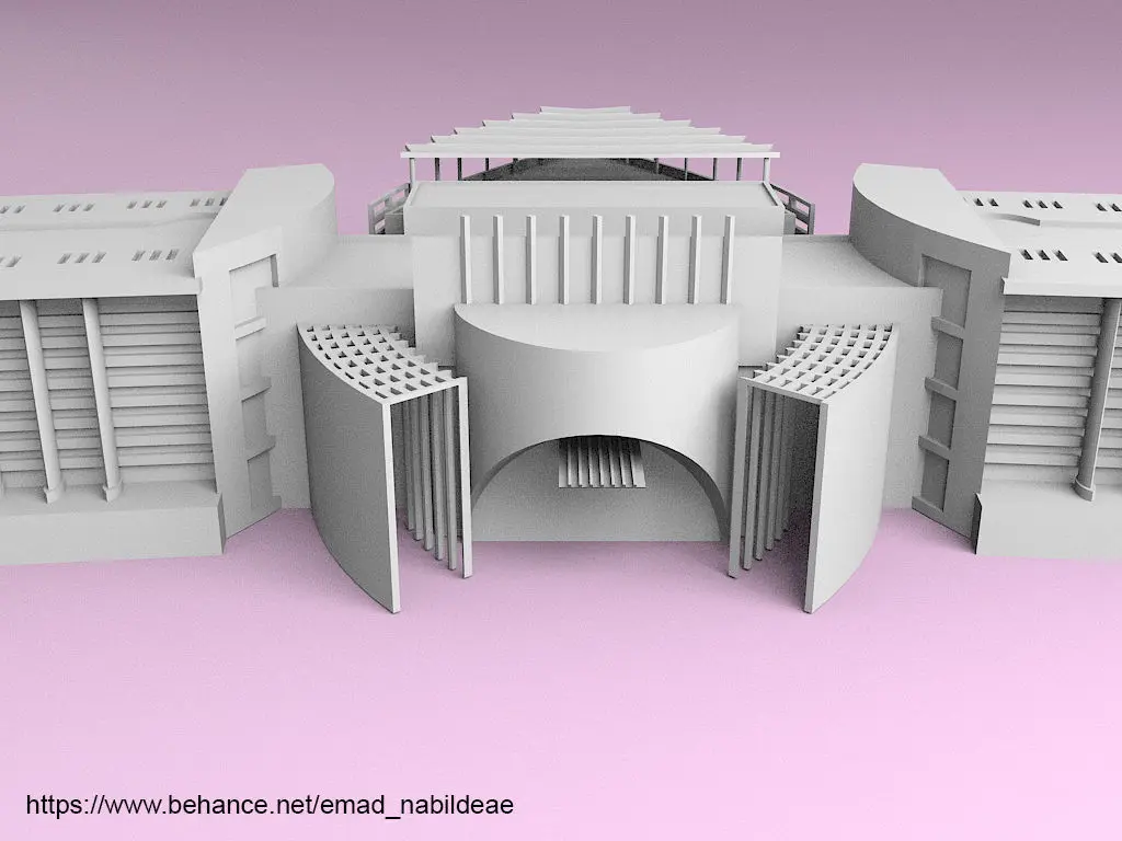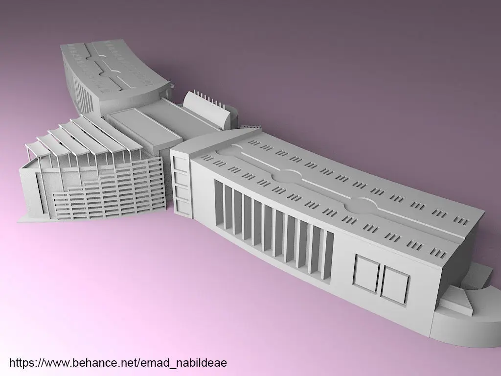 a 3D printable exterior model of the Nile University building in Cairo, Egypt.