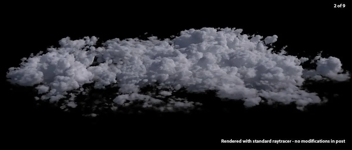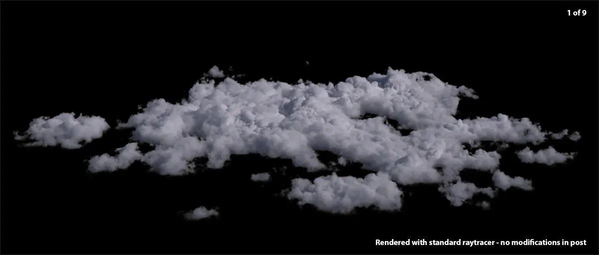 This package contains nine cloud sets in VDB. Each of these VDBs contain several clouds (in a single VDB) to easily put together a sky full of clouds.