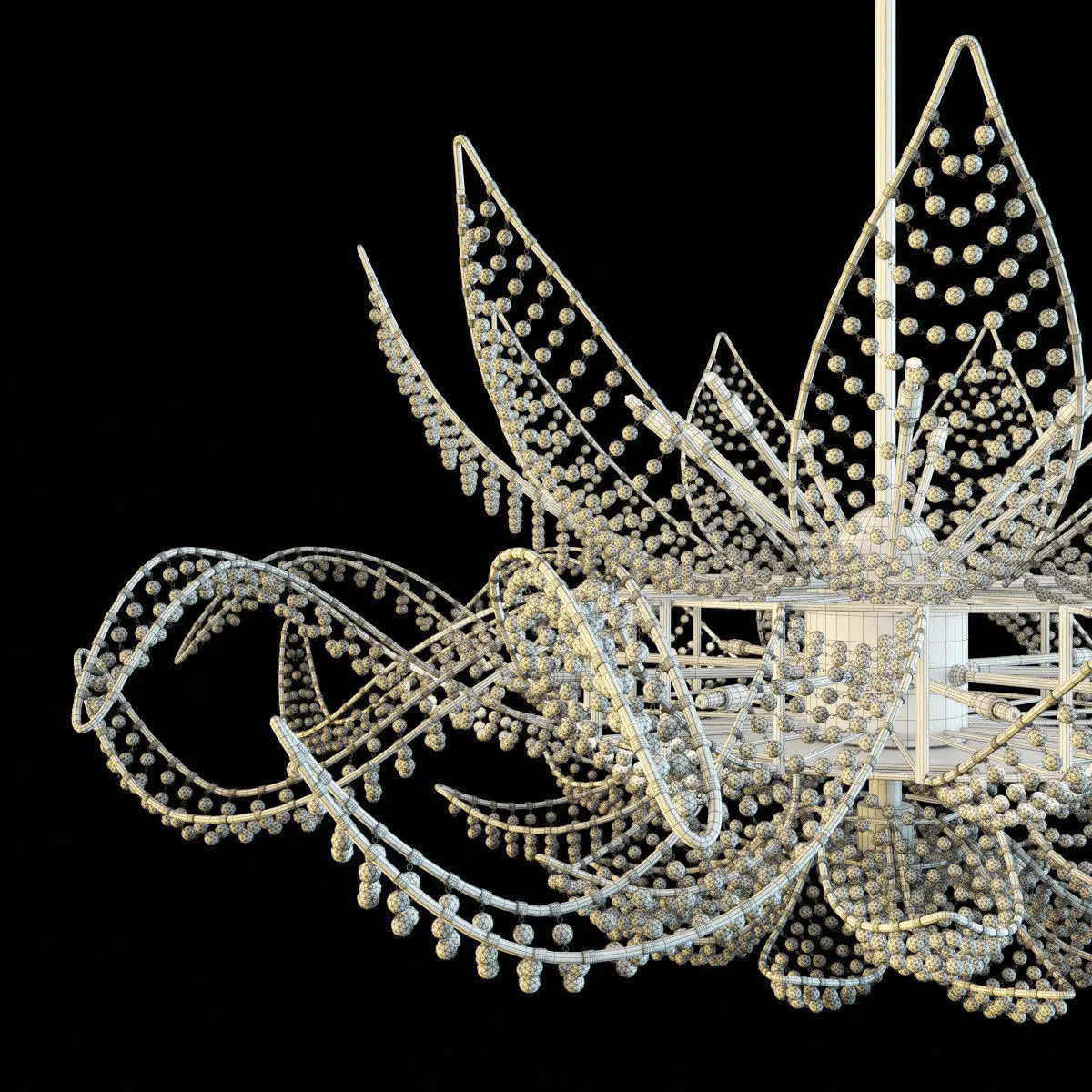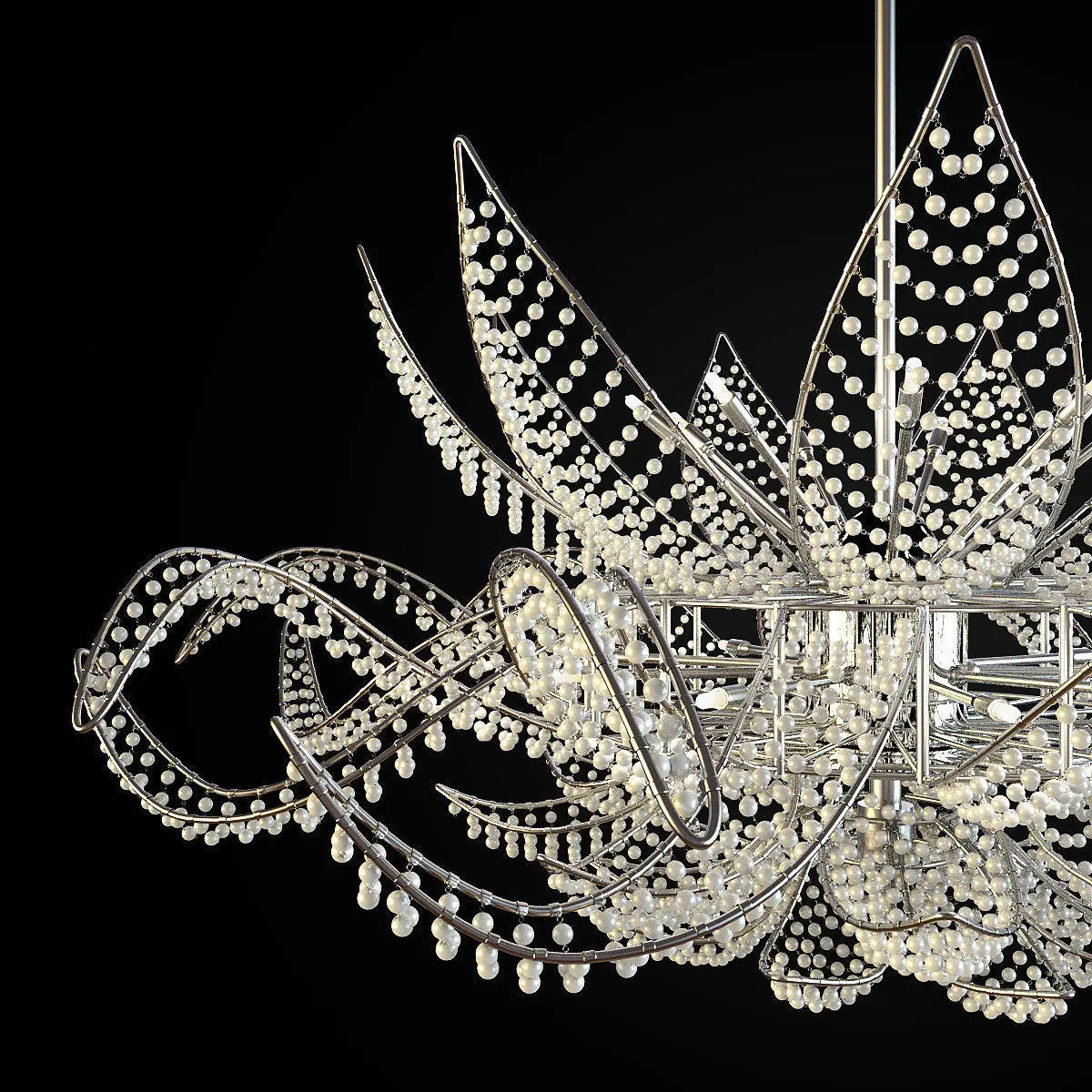 Amazing ceiling lamp in white murano glass pearls. Factory Dolce Vita, collection Ninfea, article 436/18+1PF. Dimensions: diam 125 cm/ H 80 cm . Real-world scale in mm. Formats: max2011, max2014, obj, fbx. The max files includes two groups. The first group is maximum optimized (311 088 poly) - all objects are instances, uncollapsed modifier stack, if you will need a close-up render, you can easily change the smoothing. The second group count 1 265 926 poly - all objects are converted to editable poly and combined by petals. The fbx and obj formats are made of the second group.Vray materials are available for max and fbx formats.