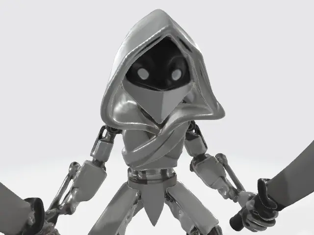 ninja robot with big swords