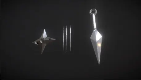 Kunai: Sharply designed with realistic textures and perfect for throwing or close combat scenes.