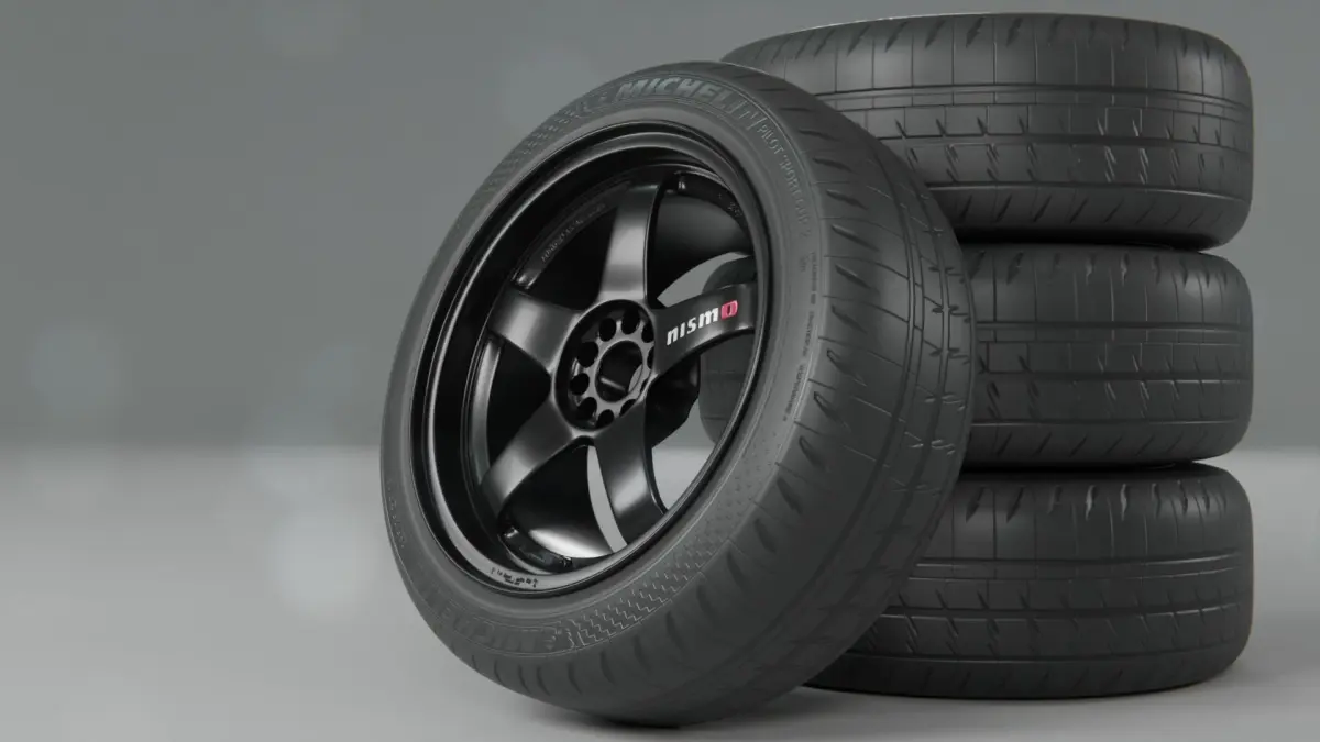 Realistic sports car wheelset. Nismo LMGT4 rims with Michelin pilot sport cup race tires. Fully unwrapped and textured (all textures are archived and in zip files). 32,5 thousand faces.