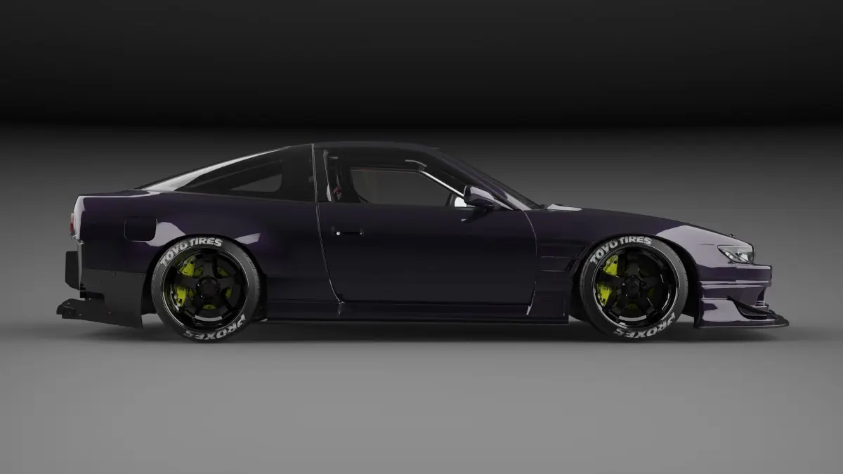 Nissan Silvia 180SX (S13) drift with some rocket bunny parts and custom interior.