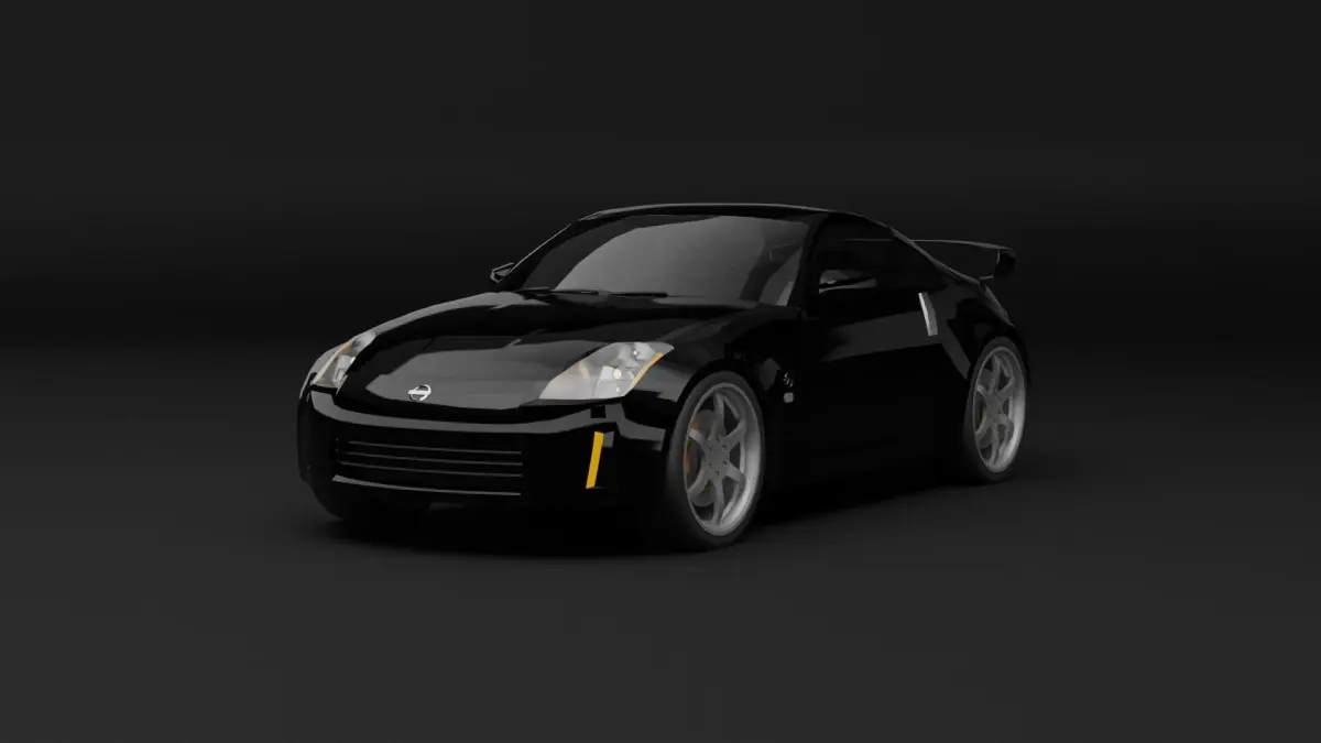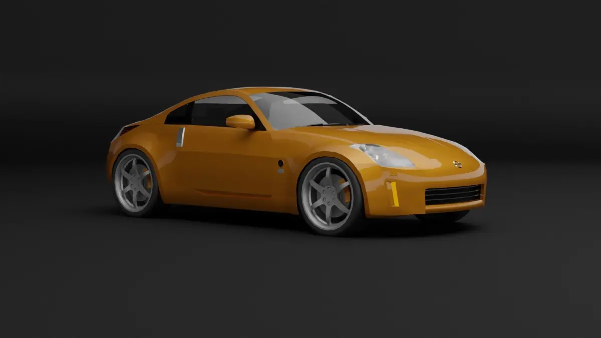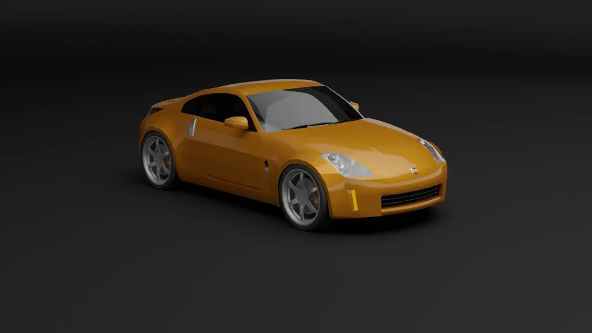 Low poly 3D model of Nissan 350Z sports car. Model based on blueprints and reference images. Car isn't textured, features only blender materials.