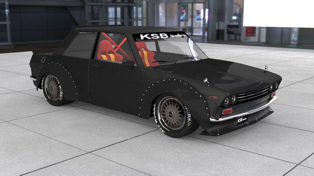 NİSSAN GT-R Datsun_510 Tuning KSBWorks.3d max 2020vray nextupdate2-datsun gtr 510 3d car model-poly:1853645-vert :1752803highpoly 3d model-stage and lights ready-high resolution or low resolution.-smooth and rough open. you can change.-only case 366000 poly-wheels are smooth-you can render.-I have added stl models.-It consists of 3 pieces.