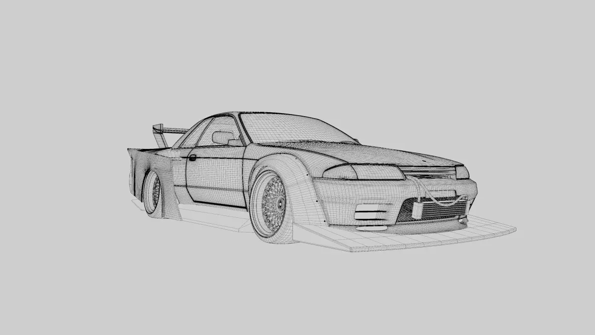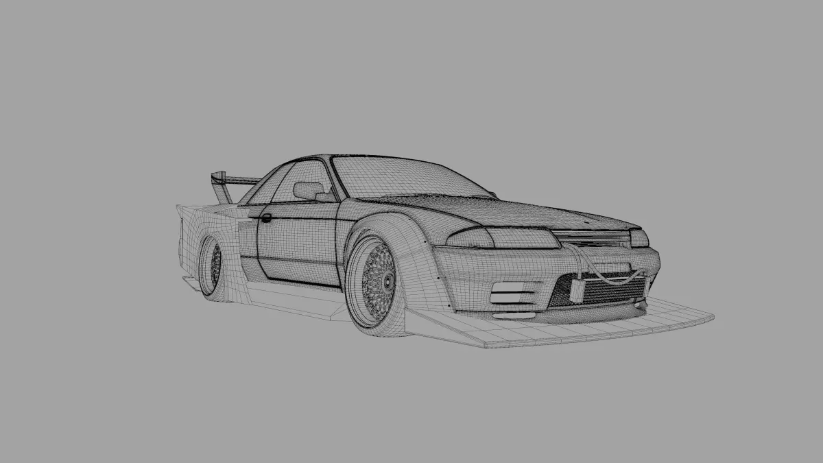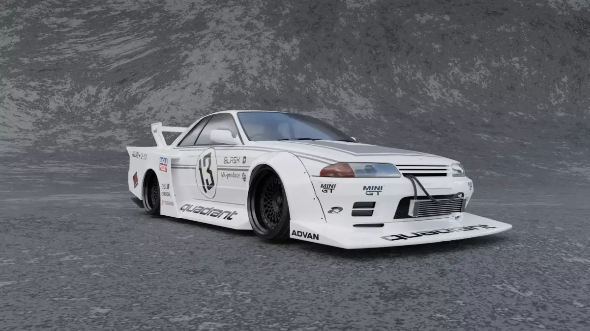 This 3D model of the Nissan GT-R R32 with the Liberty Walk Kaido Works LB85-02 body kit was used as a background car in my 3D animation submission for Rampage Rally
