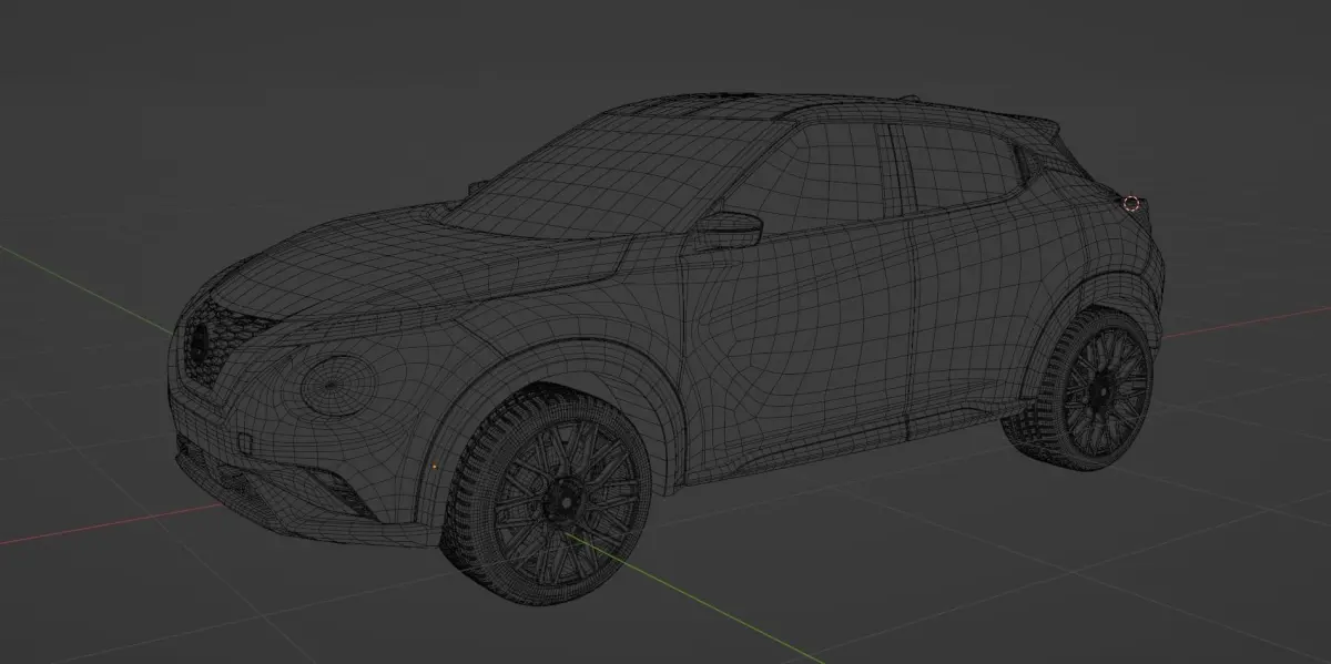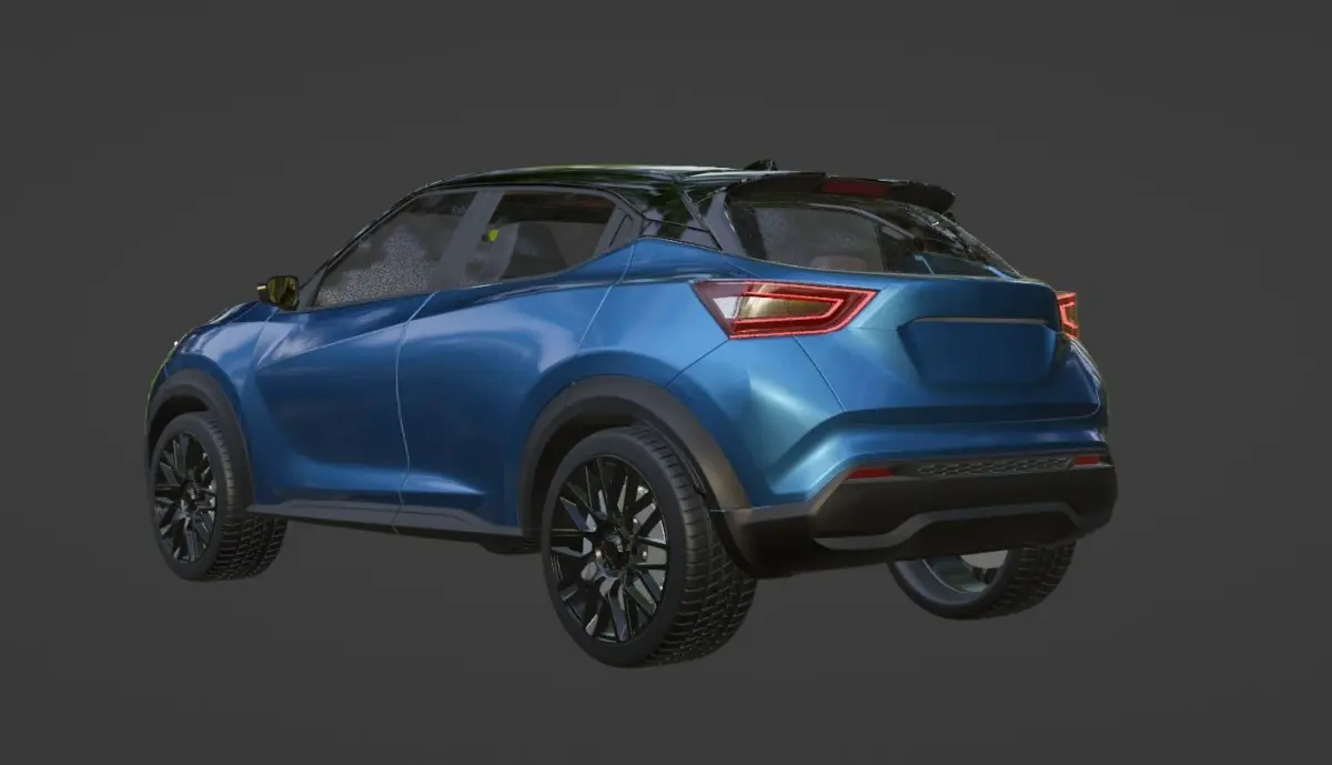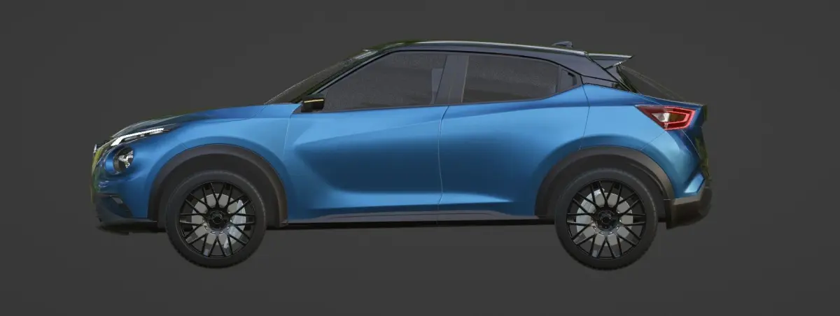 polygonal blender model of 2020 nissan juke, modeled from a high quality cad data and transformed into a polygonal model for game and visualisation