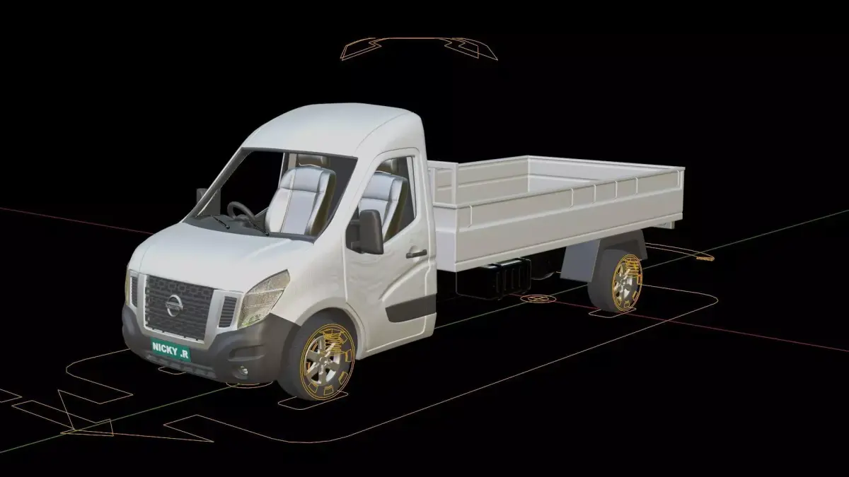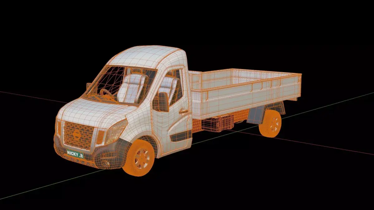 3D model of the Nissan NV 400 FlatbedCreated in Blender and already rigged.The mesh of the model in the Blender file format is mainly quads.