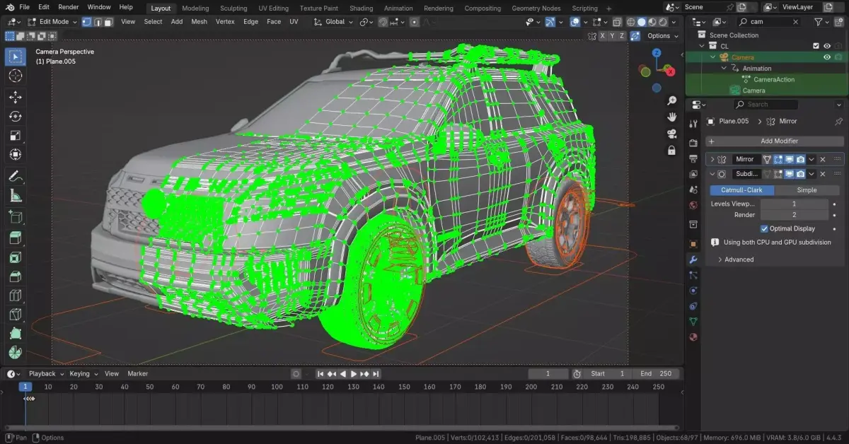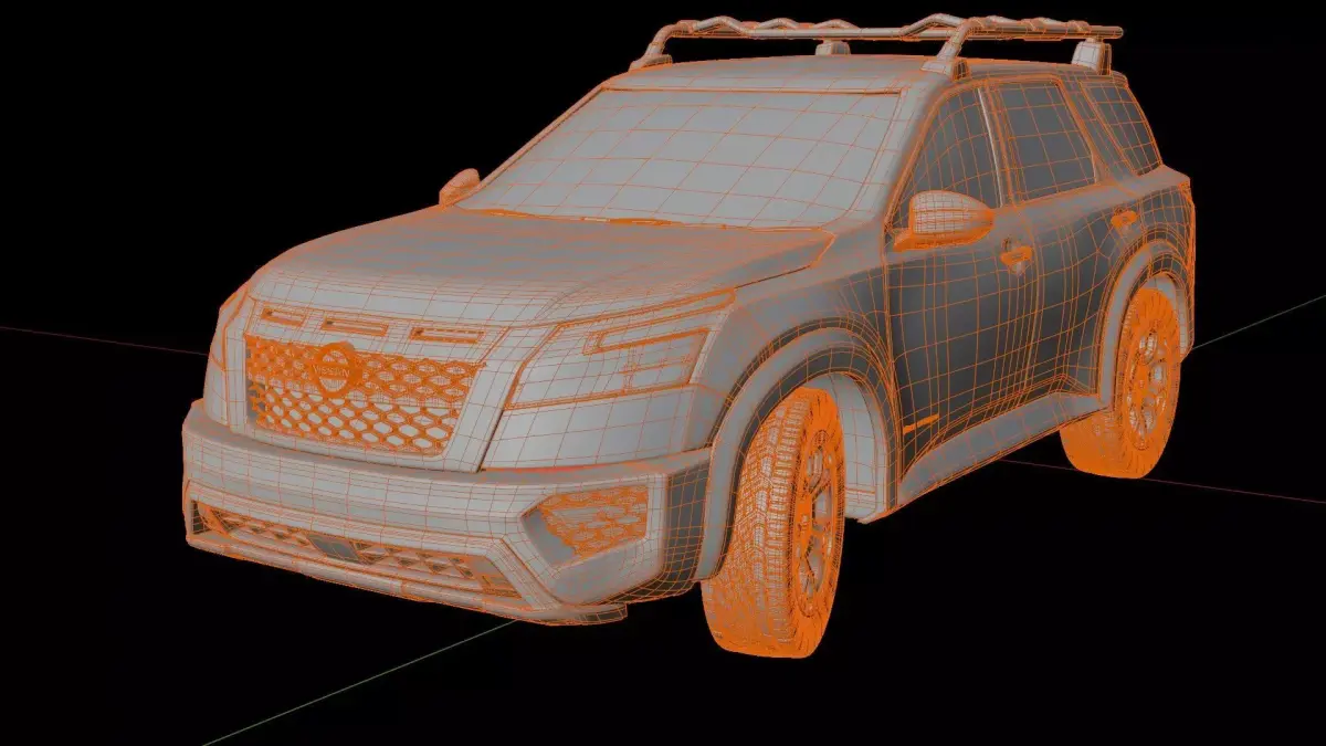 3D model of the 2013 Nissan Pathfinder Rock Creek Edition. Created in Blender and already rigged using the Rigacar add-on. The mesh of the model is primarily composed of quads.