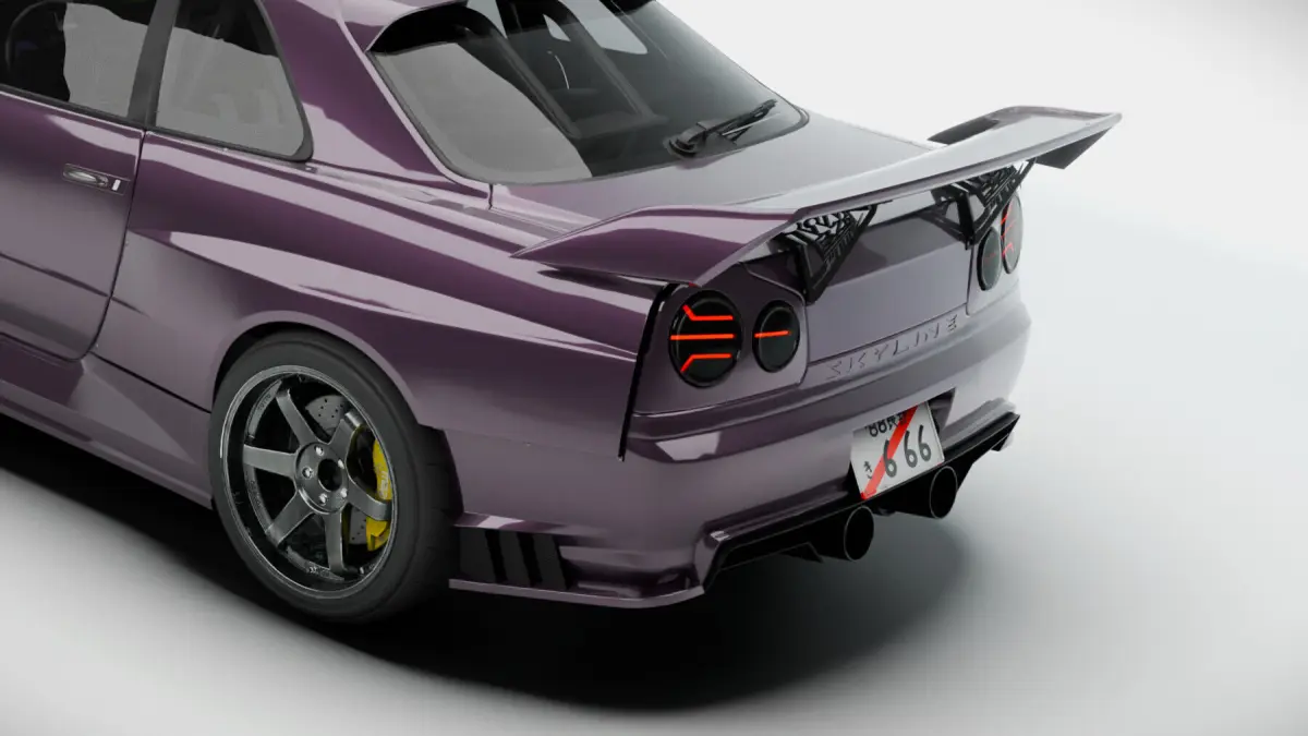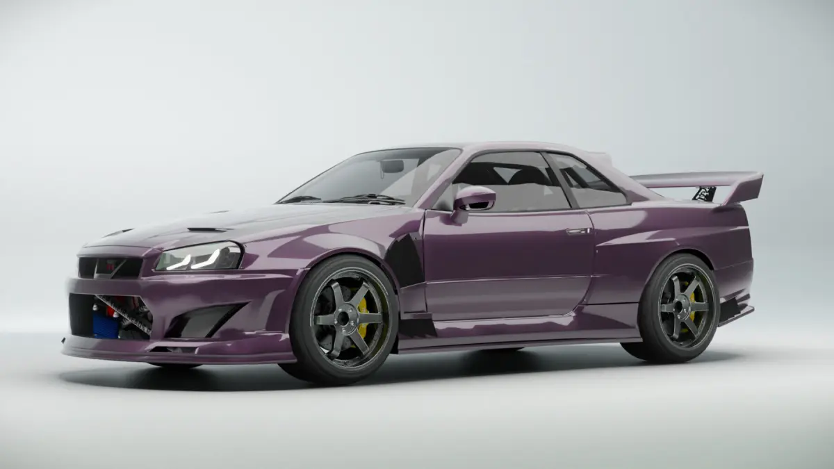 This is a fully rigged and custom-tuned 3D model of the iconic Nissan R34 Skyline, designed with high attention to detail and performance. The model features: