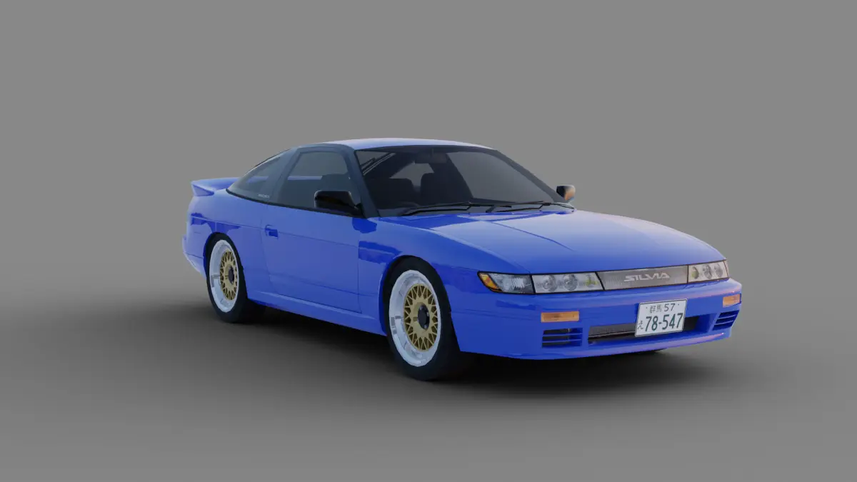 Low poly model of Nissan Sil80, Mako Sato Style (Initial D) with simple interrior. Consist of 20 correctly named parts, such as hood, wheels, doors, suspension parts etc. Model is unwraped, textures included.