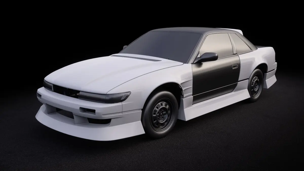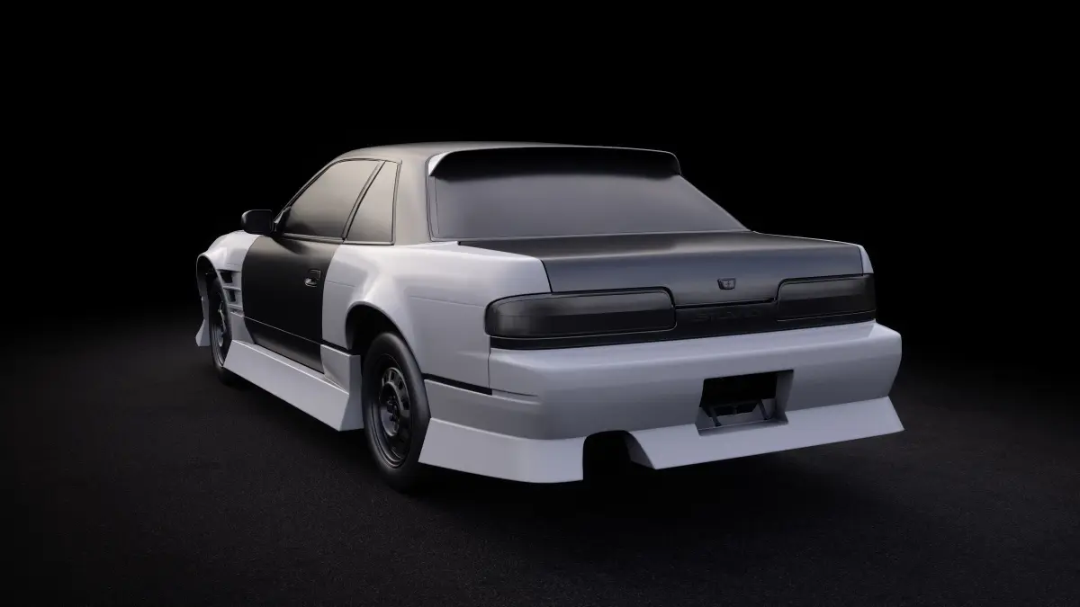 The body kit has been modeled for the Nissan Silvia S13 3d model from Gran Turismo Sport. On other Silvia S13 models, you will need to adjust the body kit.